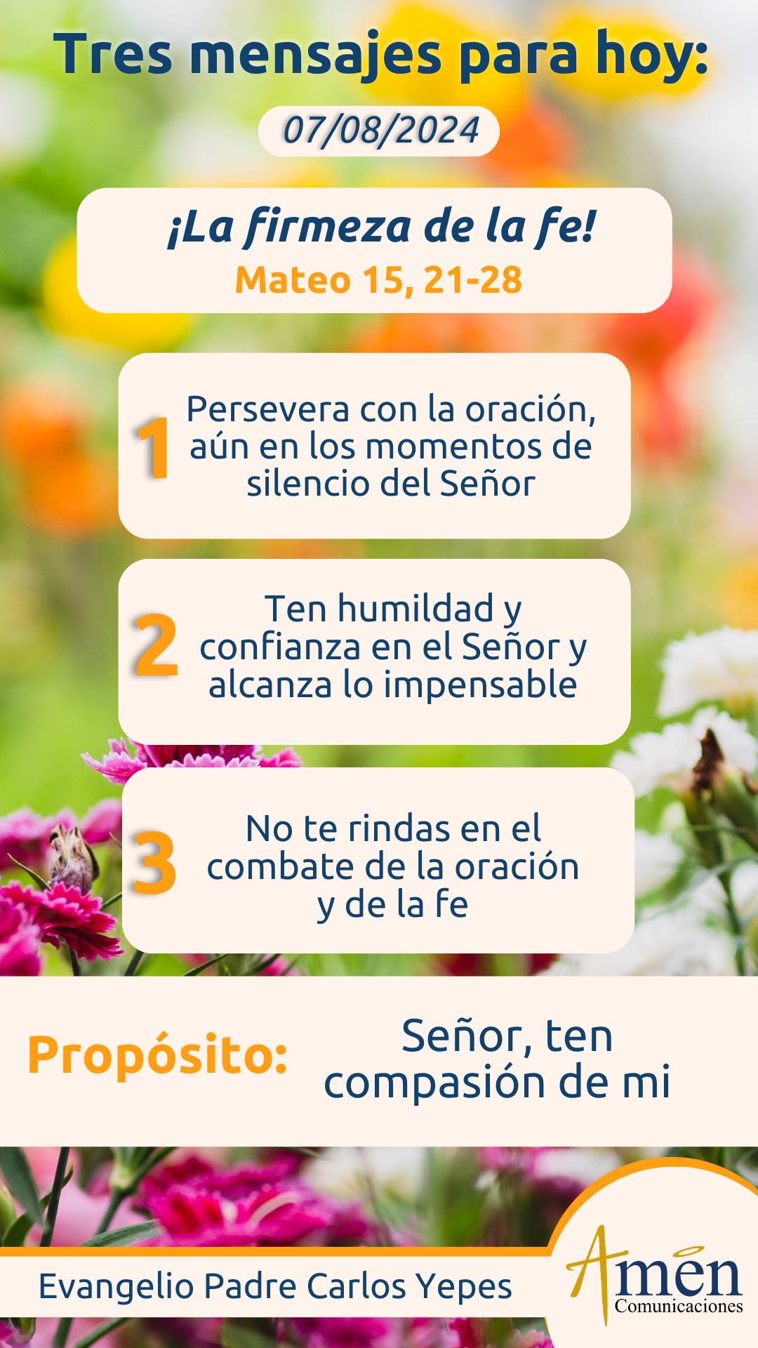 Este combate de la oración y de la fe, es modélico, es paradigmático, es ejemplarizante, para que tú y yo, frente al silencio de Dios, frente a respuestas a veces destempladas o adversidades, lejos de desanimarnos, por el contrario, perseveremos y clamemos al Señor con toda la fuerza de nuestro corazón: ¡Jesús, ten compasión de mí, Señor!, y Él, que mira lo profundo de tu corazón, no te abandona y tendrá compasión de tu vida.