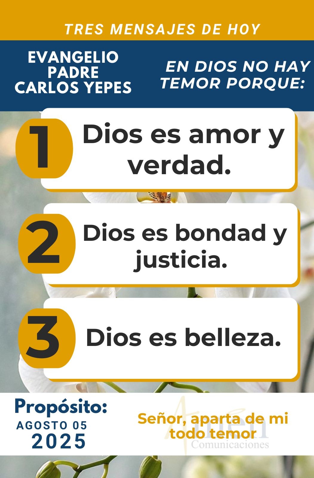 TRANSLITERACIÓN REFLEXIÓN PADRE CARLOS YEPES ¿Por qué tengo miedo? En un precioso texto, el evangelio de san Mateo en el capítulo 14, nos muestra “cómo nuestra fe debe ser firme, fuerte, sólida, sin intermitencias como la luz de las estrellas. Luz que va y viene, luz que parece encenderse y apagarse”. Descubramos momentos centrales a partir del evangelio de hoy. Estaban los discípulos en la noche en el mar y Jesús se acerca caminando sobre el agua. Ellos no alcanzan a percibir la presencia clara y nítida de Jesús, y en medio del viento contrario piensan que puede ser un fantasma. A veces acontece en nuestra vida que no tenemos claridad de cómo Jesús, en personas concretas y en situaciones particulares, camina a nuestro lado. Nos dice a renglón seguido: “Que cuando los discípulos ven a Jesús caminar sobre el agua, se asustan y se llenan de miedo pensando que Él es un fantasma”. Hoy descubre que la presencia de Dios sobrecoge, pero que no hay lugar al temor. Dios que es amor, Dios que es verdad, Dios que es bondad, Dios que es justicia, Dios que es belleza, no da lugar para el miedo y para el temor en el ser humano. ¡Sobrecogidos por su grandeza, sí, pero con temores y miedos no! De hecho, en un tercer momento de la escena evangélica encontramos cómo Jesús los invita al ánimo, al temple y a la confianza a sus discípulos y les dice: “No tengan miedo, soy Yo que estoy acercándome a la barca, a la barca de sus vidas”. Sin embargo, el apóstol Pedro, el eterno Pedro que ciertamente era un líder, pero un hombre también de emociones primarias toma la vocería del grupo y le dice a Jesús en medio de la noche: “Si en verdad eres tú el que camina sobre el agua acercándose a nuestra barca, sino eres un fantasma, dame una prueba para que yo pueda creer. Permíteme que yo haga lo mismo que tú estás haciendo, que yo camine sobre el agua, lo que es imposible como tú lo estás haciendo”. Jesús invita a Pedro a salir de la seguridad de la barca y a acercarse a Él, y le dice: “Ven”. Pedro, arrojado, audaz, pero también al mismo tiempo cobarde, se baja de la barca y comienza a caminar sobre el agua, quizás maravillado, olvidando que uno solo puede caminar sobre el agua, sobre un imposible, cuando tiene, como dice san Pablo “los ojos fijos en Jesús y cuando es capaz de caminar en solo confianza en Dios, sin miedos”. Pero nos dice “que el viento huracanado sopló con fuerza, era la madrugada, la hora más oscura de la noche, y Pedro sintió miedo. Y parece que con el miedo fallaron todas las seguridades y falló sobre todo su fe en Jesús y de manera simultánea con el miedo del apóstol Pedro, empezó a hundirse su vida, a desmoronarse su proyecto”. Hoy, tú y yo, cuántas veces hemos vivido la escena del apóstol Pedro que le decimos a Jesús creo en ti, confío en ti, mándame hacer imposibles en mi vida como caminar sobre el agua, los ojos fijos en ti sin temor, avanzando con confianza. Pero de repente, por una situación adversa, por una circunstancia contraria, por un viento huracanado, sentimos miedo, la fe se rompe y se derrumba y empezamos a hundirnos en nuestra vida. Pedro, como nosotros, grita lleno de ansiedad y de angustia: “Señor, sálvame”. No es propiamente una voz confiada la que está hablando a Jesús, sino que es un grito desesperado de un hombre que siente que el mundo y el piso se abre bajo sus pies. En ese momento nos dice “que Jesús extendió la mano y tomó a Pedro del brazo”, indicando lo cerca física y materialmente que estaba Jesús del apóstol Pedro y que él no había alcanzado a reconocer en medio de la oscuridad de la noche y del viento huracanado. Pero Jesús reprende al apóstol y le dice: “Que poca fe, ¿por qué has dudado?” Y solo cuando Pedro con Jesús suben a la barca, la tempestad amaina, los vientos contrarios se calman, la bonanza y la serenidad llegan al mar y todos los discípulos, admirados ante semejante poder sobre los signos cósmicos, los signos de la naturaleza exclaman ¡Realmente eres el Hijo de Dios! Hoy, a partir de este pasaje evangélico, te invito para que tengas una fe sin intermitencias, una fe constante, que no se deje romper, no se deje derrumbar ante una prueba, ante un viento contrario en la vida. Es más, la fe de los grandes en la Biblia se muestra y demuestra más claramente en los momentos de adversidad, de turbación en el alma o de pruebas exteriores. ¡Señor, yo creo, pero fortalece mi fe! Ten misericordia de mí por tantas veces que he tenido dudas, he tenido oscuridades en mi fe hacia ti, Señor. Que el buen Dios te bendiga en abundancia en este día y te conceda fortalecer tu fe y mantenerla cada día. En el nombre del Padre, y del Hijo y del Espíritu Santo. Amén.