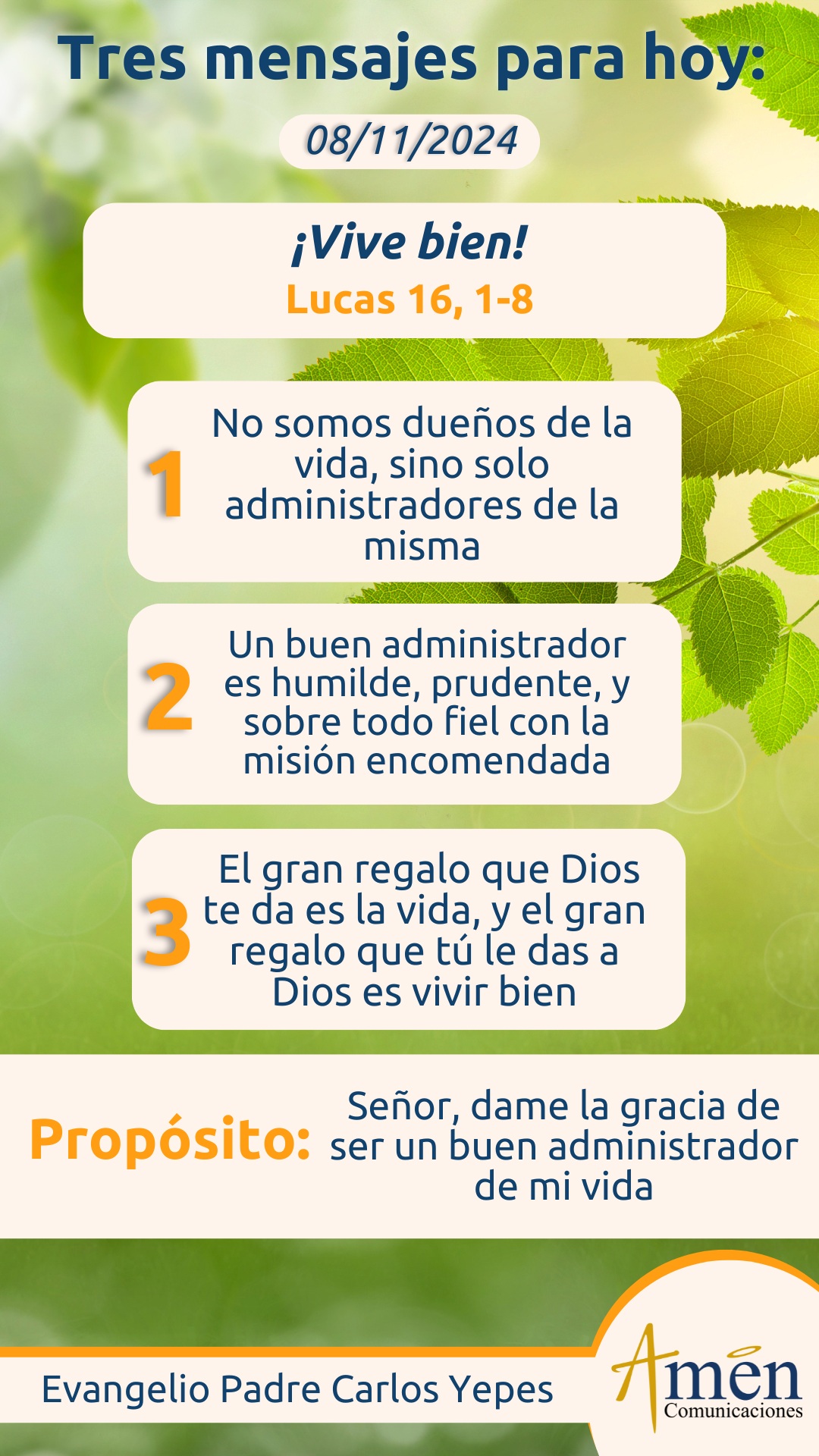 La primera de ellas, no somos dueños de la vida, sino solo administradores de la misma. De hecho, se nos da el día, se nos da la vida el día de la concepción y se nos pide la vida el día de la muerte. Un buen administrador debe tener entonces como criterios de Dios, la humildad, la prudencia, la responsabilidad, el agradecimiento y sobre todo, la fidelidad con la misión encomendada.