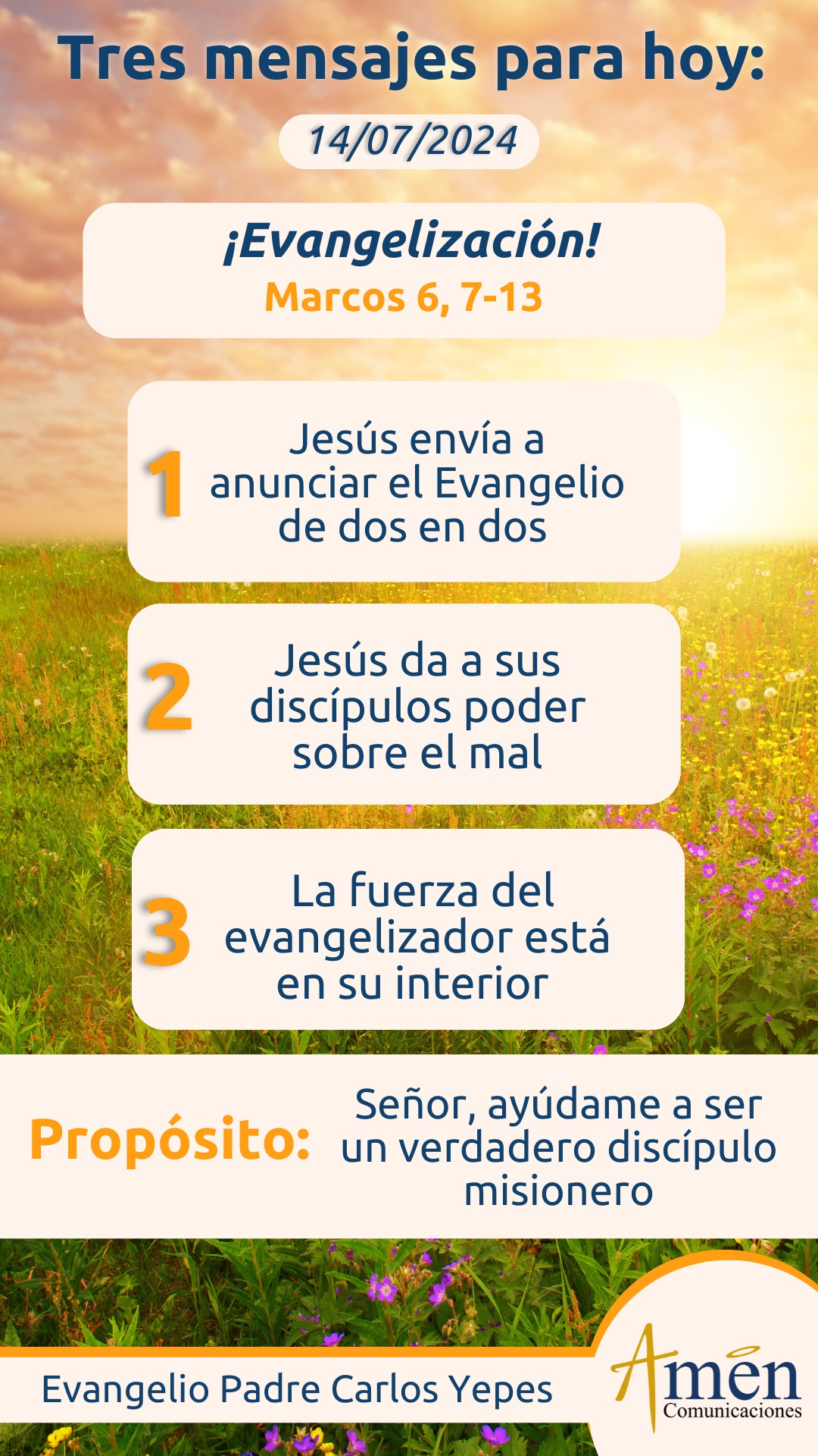 Pero en una tercera dimensión encontramos, que Jesús desea que sus discípulos, enviados en misión de amor por el mundo, vayan ligeros de equipaje. En efecto les dice: “No lleven nada para el camino: ni bastón, ni pan, ni provisiones, ni dinero; que pueden llevar sandalias, pero no dos túnicas”. Y en el fondo nos quiere señalar, que la fuerza del evangelizador no está en las cosas exteriores o materiales, sino en la fuerza interior y espiritual de su ser, la presencia del Espíritu Santo en el alma de cada hombre, de cada mujer evangelizadores, que se sienten enviados por Dios. Es que suelde suceder, que pensamos que para evangelizar necesitamos muchas tecnologías, grandes salones, numerosos recursos económicos y materiales, y olvidamos que la fuerza de la evangelización está en un alma dócil a Dios, que se deja conducir por el Espíritu, que se deja guiar por el amor y la luz divinas, eso nunca lo olvides. Cuántas almas en un lecho de enfermos, ofreciendo ese sufrimiento con fe y amor, han salvado a tantísimos desde la simplicidad y la impotencia de su enfermedad, en su cama de habitación o en su cama de hospital.
