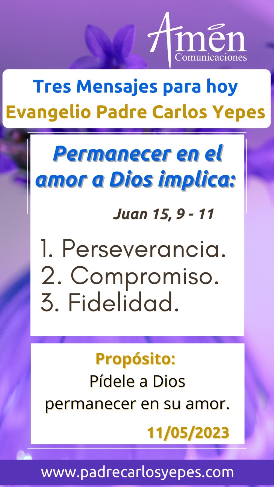 Un viejo adagio afirma que “iniciar en el amor es de todos, perseverar en ese amor es de pocos, y terminar la vida en un solo amor es de verdaderos santos”. Ciertamente, los adagios de la sabiduría popular enseñan grandes verdades en la vida, y precisamente es la idea primera del evangelio de hoy, que nos presenta ese permanecer en el amor de Dios.