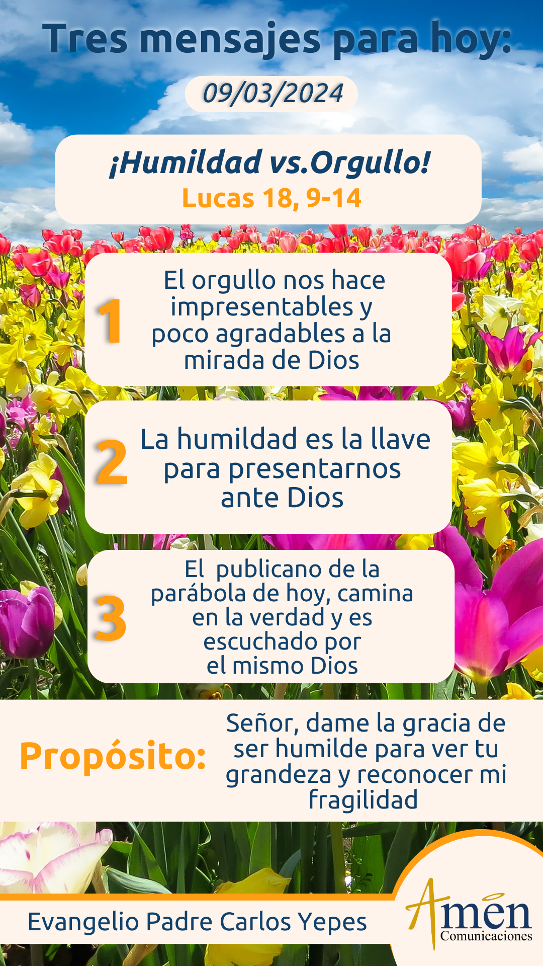 Ojalá no dejemos enorgullecer nuestro corazón, llenarnos de un falso ego, porque sólo el humilde como el publicano de la parábola de hoy, camina en la verdad, sólo el humilde es escuchado por el mismo Dios.