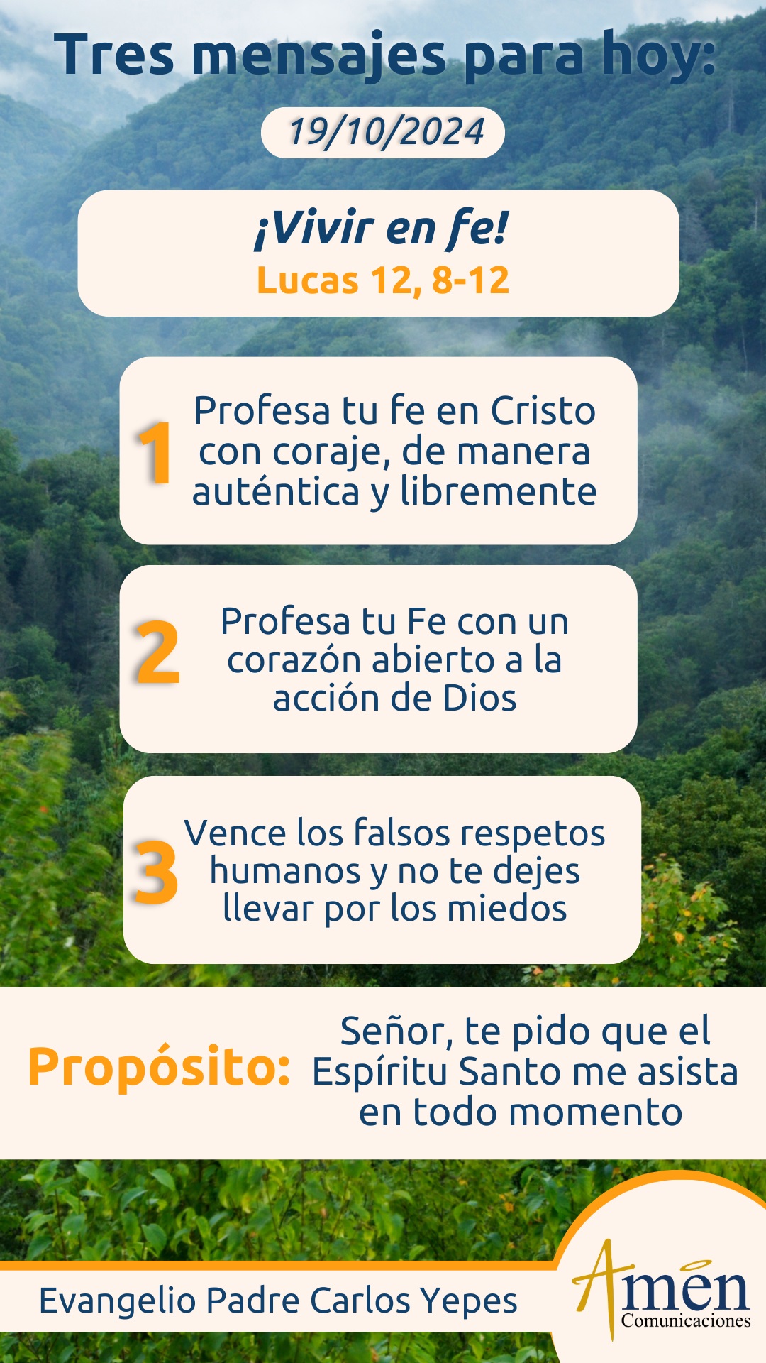 Señor, que el Espíritu Santo nos asista para hablar cuando debemos hablar, que no callemos cuando debemos declarar y que tengamos la certeza, que, si nosotros no manifestamos ante los hombres por la causa del evangelio, Jesús se manifestará ante el Padre Dios por nuestra propia vida, abogará por ella en el Reino de los Cielos.