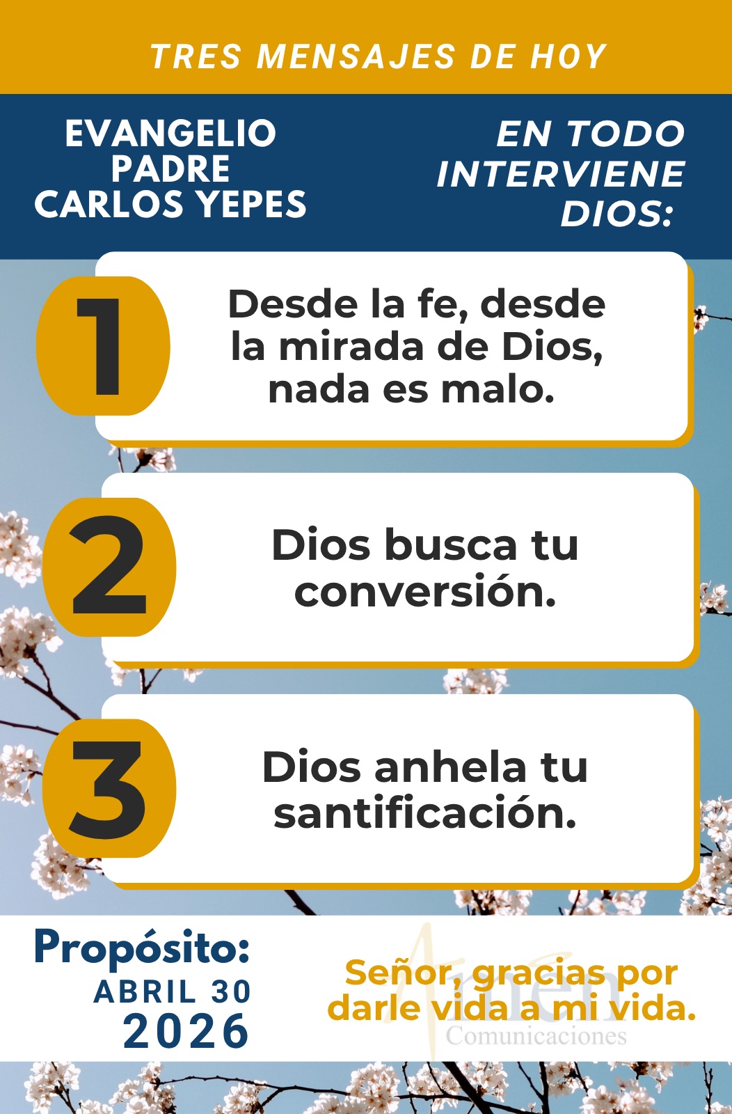 Esto te abre un horizonte impensable, descubrir que, desde la fe, desde la mirada de Dios, nada es malo, nada es negativo en tu vida, Dios lo ha permitido, sino querido, por lo menos lo ha permitido, respetando tu libertad, buscando tu conversión, buscando la renovación de tu vida y en último término, buscando tu santificación y la salvación eterna de tu alma, que es lo único que no podemos perder ninguno de nosotros.