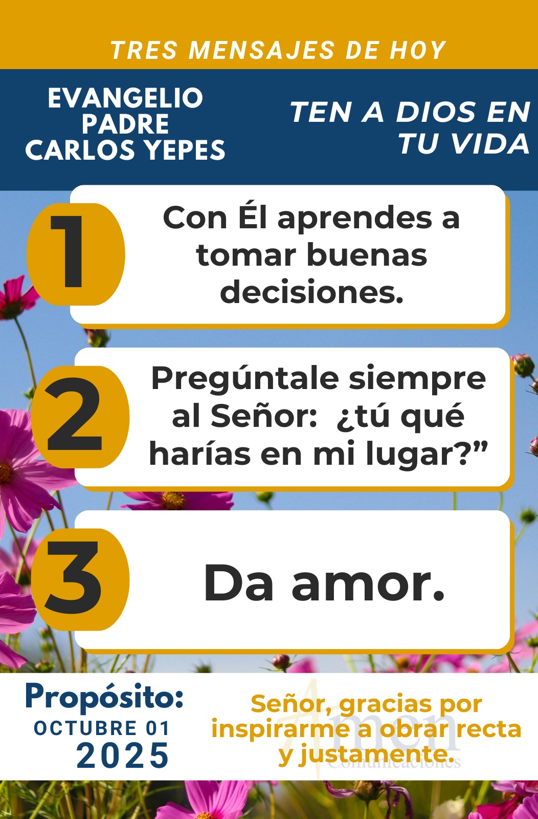 En una cuarta frase en el seguimiento de Jesús en el siglo XXI, te invito para que nunca te arrepientas de obrar recta y justamente. Siente la alegría y la paz que son fruto de una conciencia tranquila. Y aunque a veces algunos te cuestionen y te digan ¿qué has ganado con obrar el bien?, ¿qué has ganado con entregarte a los demás?, ¿cuántos problemas has vivido o has sufrido por ayudar a otros? Recuerda que la recompensa vendrá al final de la vida y “que el hombre justo, aunque viva muchos males, al final, siempre es sustentado, protegido, preservado por Dios; y por el contrario, el hombre malvado, inicuo, intrigante, aunque de momento triunfe, al final termina enredado en la propia telaraña de intrigas que ha construido”.