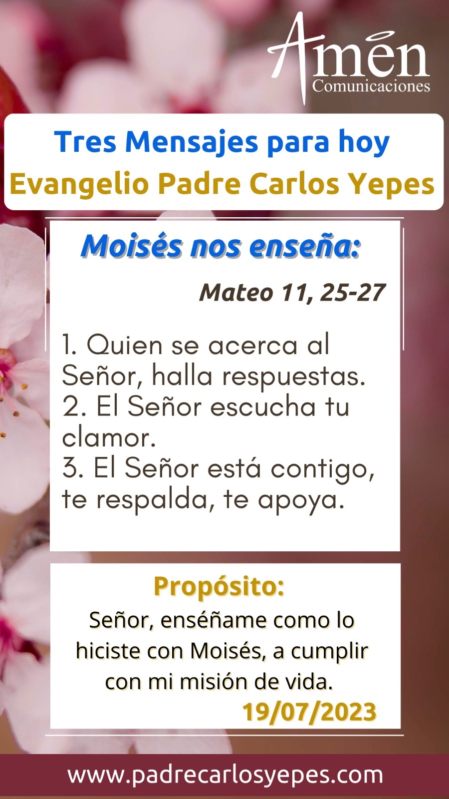 Hoy siente, que, aunque no eres Moisés, tienes una alta misión en tu vida y aunque propiamente no veas una zarza de fuego, que arde sin consumirse, Dios si sabe leer tu historia, te ha dado suficientes signos, para encontrar cuál es tu gran tarea, tu gran misión en la vida, que tiene que pasar por el amor y el servicio a los demás y por el anuncio, de la acción salvadora de Dios, en la vida de los hombres.