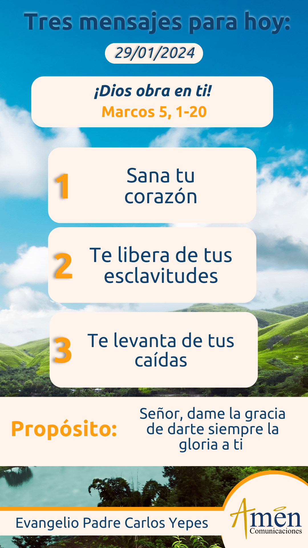 En ese sentido tú y yo, que hemos vivido la realidad del mal, cuando en nuestro corazón hay odio, ambición de riquezas, opresión sobre otros, injusticias, mentira y doblez, egoísmo, incapacidad de amar a nadie, en esa gama amplísima de espíritus del mal que moran en nuestro corazón, reconozcamos que estamos llamados a proclamar ante el mundo, que Jesús nos ha liberado. Que en esto consiste el seguimiento de Jesús, en anunciar ese mensaje de que somos hombres nuevos, no solamente liberados de la posesión demoníaca del evangelio de hoy, sino todos nosotros estamos llamados a reconocer, la obra de sanación interior, la obra de levantamiento de nuestras caídas, la obra de liberación de nuestras cadenas, que con amor y paciencia, con sabiduría y en el tiempo, Jesús ha obrado en cada uno de nosotros.