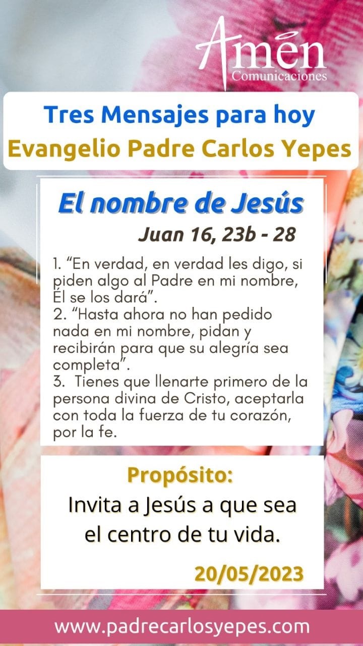 La primera, Jesús dirá a sus discípulos y en sus discípulos a la humanidad entera: “En verdad, en verdad les digo, si piden algo al Padre en mi nombre, Él se los dará”, nos habla esta afirmación primera, de la eficacia y si se quiere del poder de la oración; cuando crees en Jesús, e invocas su santo nombre al Padre Dios, todo lo que pidas se te concederá. Cuando a veces sentimos que nuestra oración es infecunda o estéril, pregúntate ¿con qué calidad de fe pides a Dios?, y siempre clama a través de este gran mediador que es Jesús su Hijo, y todo lo obtendrás.