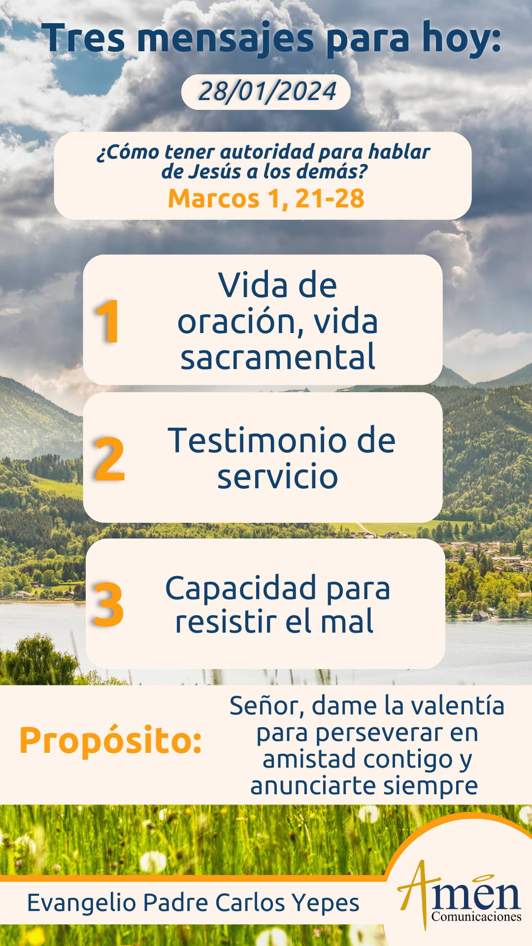 En una tercera y final enseñanza, encontramos el asombro y la sorpresa de la gente y de la multitud, ante la enseñanza con autoridad de Jesús y ante la obediencia que los espíritus del mal tienen frente a sus palabras. Hoy nos quejamos, de que la gente es indiferente frente al mensaje evangélico y no sabemos cómo despertar su asombro, cómo despertar su sorpresa, su capacidad de maravillarse ante la novedad del evangelio; la respuesta es una sola, cuando nos apoyamos en el poder de Dios manifestado en Jesucristo, podemos hacer maravillas en la vida de las personas y del mundo, por eso hay que dejar ese espíritu de cobardía, esos complejos de inferioridad, ese pensar que el mundo y su engaño tiene la última palabra sobre la Iglesia y los hijos de la luz, no es verdad. Hoy puedes maravillar, asombrar a multitud de personas, si lleno de la fuerza de Jesucristo, eres capaz de anunciar el bien, desechando el mal en el corazón de los hombres. No te fíes de tus fuerzas, confíate en Dios y verás verdaderos milagros en tu vida y en la vida de los más cercanos.