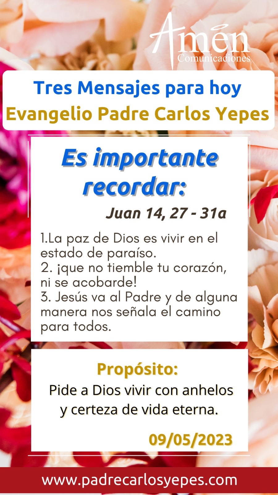 Por eso hoy esta palabra se dirige de manera particular a tu vida, ¡que no tiemble tu corazón, ni se acobarde!, y Jesús hace una promesa: “Voy donde el Padre y volveré a su lado”, pero que esto no sea motivo de tristeza o de congoja, no, es que volver al Padre es la meta más grande que puede alcanzar un hombre, es el objetivo definitivo de nuestra vida, es volver al que es más grande que todos nosotros, inclusive más grande que Cristo; es volver al Dios que es nuestro origen y nuestra fuente; de Él vinimos y a Él volveremos, en esto consiste la vida verdadera, en que te conozcan a ti, Padre Dios, te experimenten a ti Padre Dios, y conozcan, experimenten a tu enviado Jesucristo.