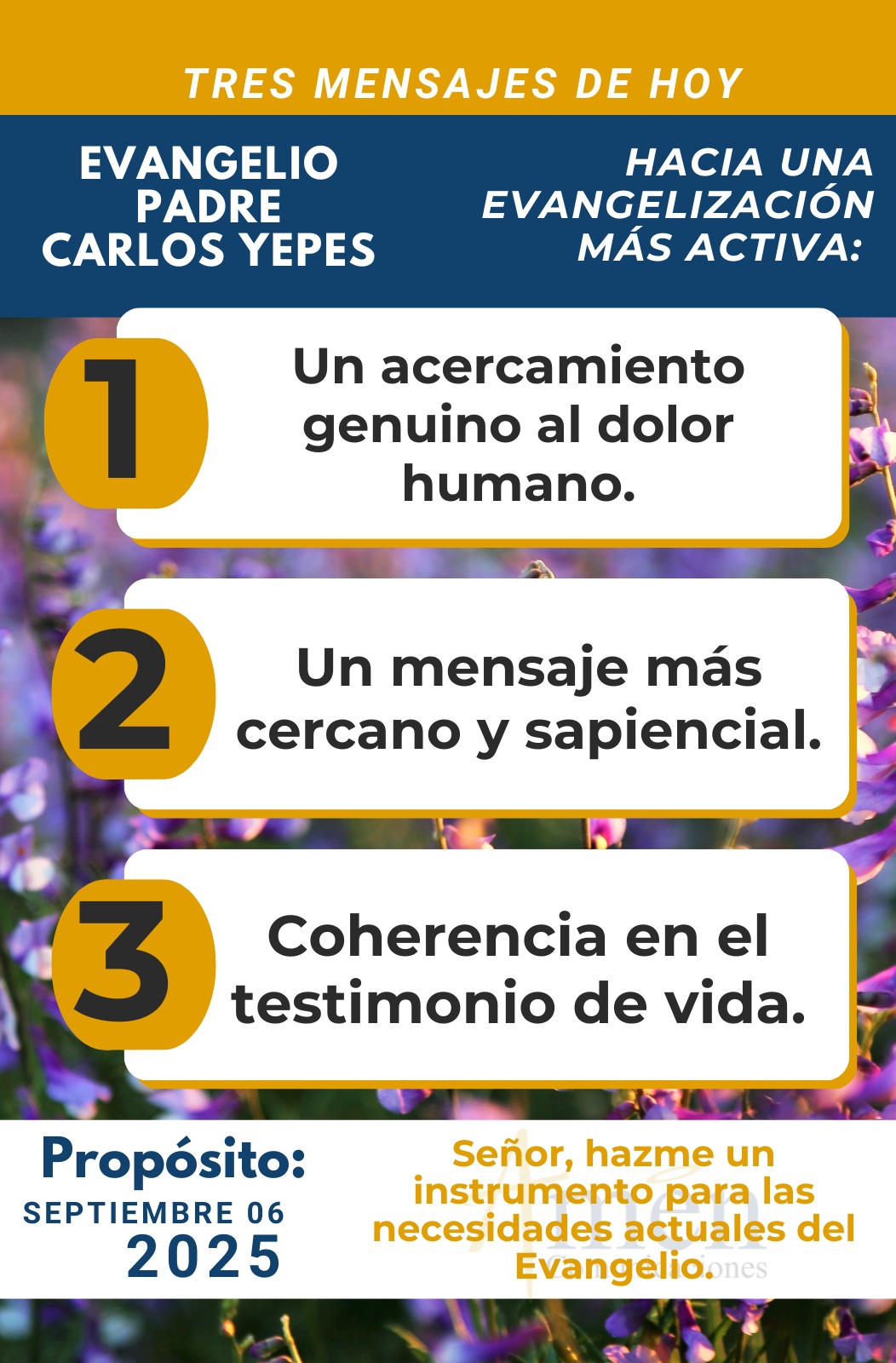 Pero, además, uno, del valor profético, dos, del acercamiento al dolor humano. Hoy el mensaje del evangelio tiene que tener un sabor sapiencial. Presentar el evangelio como una sabiduría de vida, enseñar desde lo cotidiano, dejando atrás las grandes especulaciones y discursos teológicos, y mostrar el evangelio como una luz que nos ayuda a vivir mejor en el matrimonio, en la familia, en el trabajo, en la sociedad, en la vida pública. Mostrar el evangelio como mensaje oculto, o mejor, con una sabiduría oculta que no desentrañamos fácilmente en una sociedad que entiende de ambiciones, de hacer dinero, de acumulación económica, de placer sin límites; pero no entiende de servicio, de amor comprometido, de entrega generosa, de misericordia con el equivocado.
