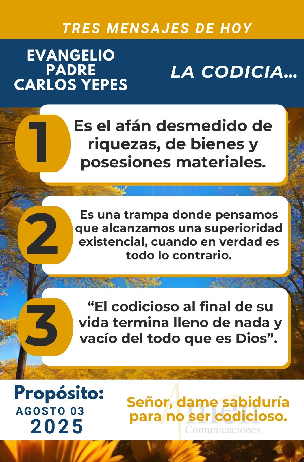 La codicia es una trampa donde pensamos que alcanzamos una superioridad existencial, una seguridad definitiva para nuestra vida, cuando en verdad es todo lo contrario. “El codicioso al final de su vida termina lleno de nada y vacío del todo que es Dios”.