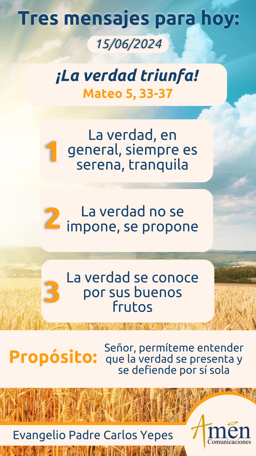 Vamos cerrando nuestra reflexión y digamos, que la verdad y nada más que la verdad, resiste el paso del tiempo. Difícilmente encontramos en la historia de los miles de santos canonizados por la Iglesia Católica, difícilmente encontramos la historia, que ellos no hayan sido perseguidos, señalados, calumniados y, sin embargo, es la propia Iglesia que puede que en su momento les haya perseguido, la que luego muestra luz de verdad sobre ellos, los reivindica y muestra el valor de su humanidad y el poder de la espiritualidad que siempre los acompañó. Por eso no te preocupes demasiado, si hoy caes en desgracia por una mentira dentro de tu empresa, por una difamación con tu familia, por una calumnia social y publica; lo que hoy para el mundo pareciera ser la verdad, con el paso del tiempo se va decantando, la mentira se va cayendo, porque la mentira no es capaz de resistir el paso del tiempo y la verdad se impone.