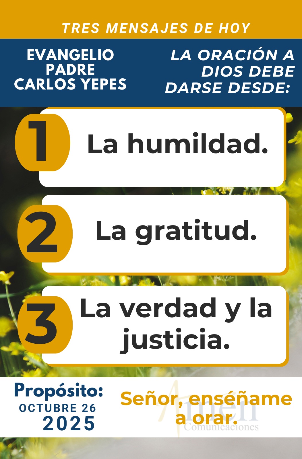Que el Señor te bendiga en este día. En el nombre del Padre, y del Hijo, y del Espíritu Santo. Amén.