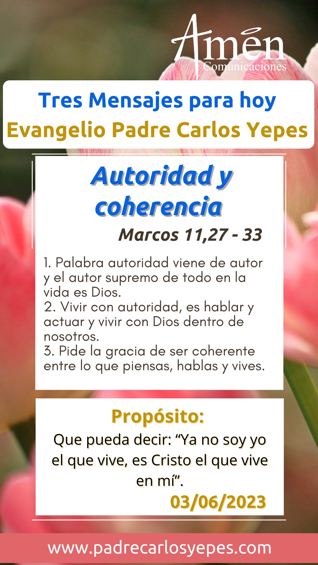Que el Señor nos dé a todos coherencia y autoridad para hablar, para predicarlo y para vivir, y te bendigo en este día, en el nombre del Padre y del Hijo y del Espíritu Santo. Amén.