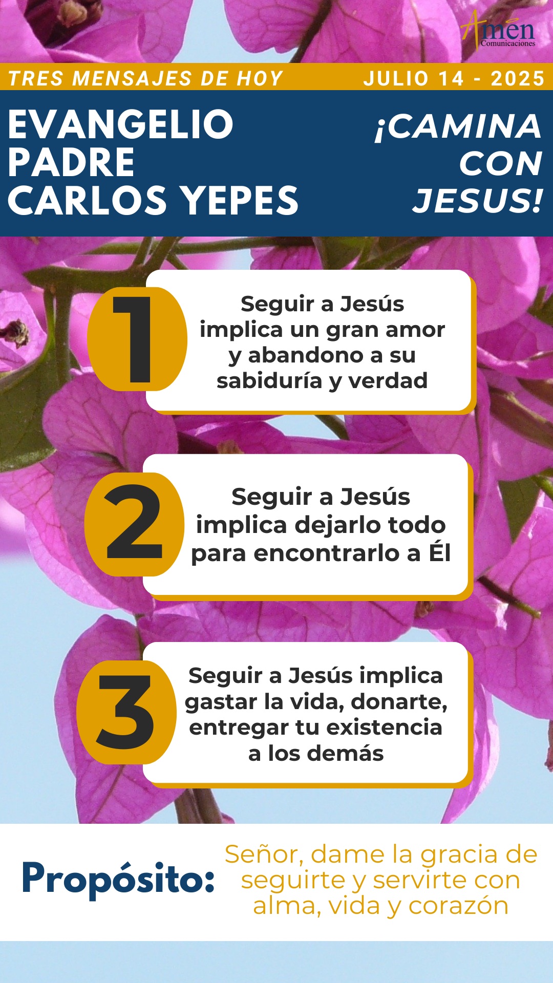 TRANSLITERACIÓN REFLEXIÓN PADRE CARLOS YEPES ¡Jesús te pide un seguimiento total! Con el Libro del Éxodo comenzamos la más impresionante historia, de cómo el pueblo de Israel, el pueblo de Dios es liberado de más de 400 años de opresión, crueldad y esclavitud a manos del imperio y del faraón egipcio. En efecto nos cuenta el comienzo del Libro del Éxodo, cómo el pueblo de Israel era azotado, humillado y maltratado, porque los egipcios sentían miedo de ellos, ya que era un pueblo que crecía y se multiplicaba rápidamente y sentían que debían de colocarle capataces para que dirigieran las construcciones de las grandes edificaciones que tenía el imperio egipcio. Pero nos dice el comienzo del Libro del Éxodo, que cuanto más los oprimían a los hebreos, ellos crecían y se propagaban más rápido, de modo que los egipcios sintieron odio hacia los hijos de Israel, los esclavizaron con crueldad y les amargaron su vida con duros trabajos del barro, de los ladrillos y con toda clase de faenas del campo, con trabajos por demás crueles. Y es allí cuando se da la famosa orden, cuando el faraón dictamina a todo su pueblo: “Cuando nazca un niño hebreo, échenlo al río Nilo, si es niña déjenla con vida”. Pero seguiremos hablando del Libro del Éxodo en evangelios sucesivos. Ahora pasemos al evangelio según san Mateo, que nos deja tres enseñanzas, en principio paradójicas o contradictorias con nuestro criterio humano. La primera, cuando hemos imaginado a Jesús como un hombre de paz, de Espíritu manso, de armonía en su corazón, lanza esta dura invectiva a sus apóstoles: “No piensen que he venido a la tierra a sembrar paz, no, no he venido a sembrar paz sino espada, he venido a enemistar al hombre con su padre, a la hija con su madre, a la nuera con su suegra”. Y afirmará lapidariamente: “Los enemigos de cada uno serán los de su propia casa”. Pero, ¿cómo entender esta realidad que nos parece, repetimos, totalmente contradictoria? Simplemente Jesús quiere ratificar, que el seguimiento a su Persona comporta una cierta violencia interior, que nos puede llevar incluso a la división en la familia, a opciones más radicales, a la renuncia a cosas o bienes que apreciamos, para conseguir un tesoro más grande, ¡la sabiduría y la verdad que hay en seguir a Jesús! A veces nosotros como creyentes en Cristo, encontramos en nuestro círculo de amigos, compañeros de trabajo y aún de la propia familia, cierta incomprensión, porque se nos tilda de fanáticos, se nos tilda de personas demasiado radicales frente a un mundo que predica sólo la tibieza, la mediocridad, y el compromiso eso sí radical con el dinero y el éxito, pero no con Dios y con la trascendencia divina. Pero a renglón seguido viene una segunda enseñanza, también en esta línea de radicalidad evangélica, cuando Jesús afirmará a sus apóstoles y en ellos nos dirá a nosotros: “El que quiera a su padre o a su madre más que a mí, no es digno de mí; el que quiere a su hijo o a su hija más que a mí, no es digno de mí, y el que no carga con su cruz y me sigue, no es digno de mí”. En el fondo está hablando de la dignidad o no, que tenemos para poderlo seguir, y ésta se construye, cuando dejamos a un lado los amores más sacrosantos de los padres, de los hijos, en general de la familia, y cuando no asumimos, no cargamos nuestra cruz de cada día, el seguimiento de Jesús. Reconozcamos en esta verdad, que todos en lo humano, o por lo menos muchísimas personas, sentimos que la familia y el amor por ella ocupa el primerísimo lugar en nuestro corazón, y Jesús nos dirá entonces, que no somos verdaderos discípulos seguidores de Él, que no somos dignos de Él, si por encima del amor y de la total entrega a Él, están los amores menores, aún el de la familia, padres, hermanos o hijos, todos amores humanos y por tanto efímeros, que pasarán con el paso del tiempo, con la vejez y con la muerte. Pero quizás la afirmación más radical, y que encontramos en un tercer momento y final, y la que ha llevado a más conversiones a numerosos santos en la historia de la Iglesia, es la que formula Jesús a sus discípulos cuando dice: “Sólo el que encuentre su vida, la perderá, y el que la pierda, la encontrará”. Encontrar la vida, ganar la vida, vivir para nosotros, es camino de alguna manera según la sabiduría de Dios de perdición; y por el contrario, el gastar la vida, el donarnos, el entregar la existencia, es camino de encontrar la verdadera vida. Sólo se me ocurre frente a una afirmación lapidaria tan fuerte descubrir, que encontramos vida en donar la vida cada uno, como una madre encuentra el sentido de su vida, donándola en sacrificio y entrega por sus hijos, o cuando un buen sacerdote pastor de almas, encuentra el sentido de su vida gastándose y desgastándose por sus feligreses. Hoy reconoce esta sabiduría tan alta en la vida de un cristiano, y aunque nos parezca contradictoria y totalmente paradójica con los criterios del mundo, pidámosle al Señor, que nos dé su auxilio, su gracia, para poder vivir el evangelio con más fidelidad, con más radicalidad. Que el Señor, te bendiga en abundancia en este día. En el nombre del Padre, y del Hijo y del Espíritu Santo. Amén.