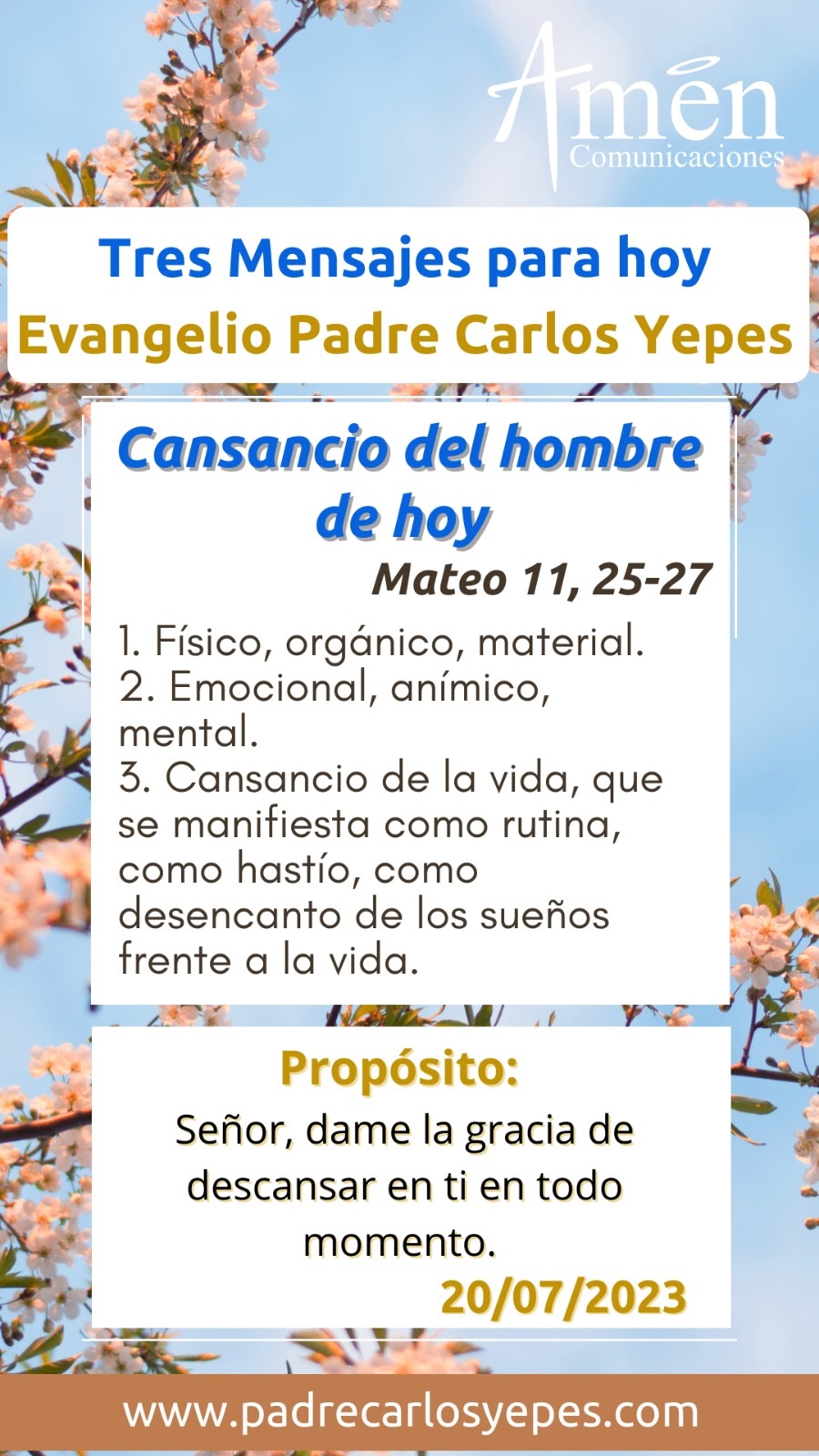 -«Venid a mí todos los que estáis cansados y agobiados, y yo os aliviaré. Cargad con mi yugo y aprended de mí, que soy manso y humilde de corazón, y encontraréis vuestro descanso. Porque mi yugo es llevadero y mi carga ligera.»