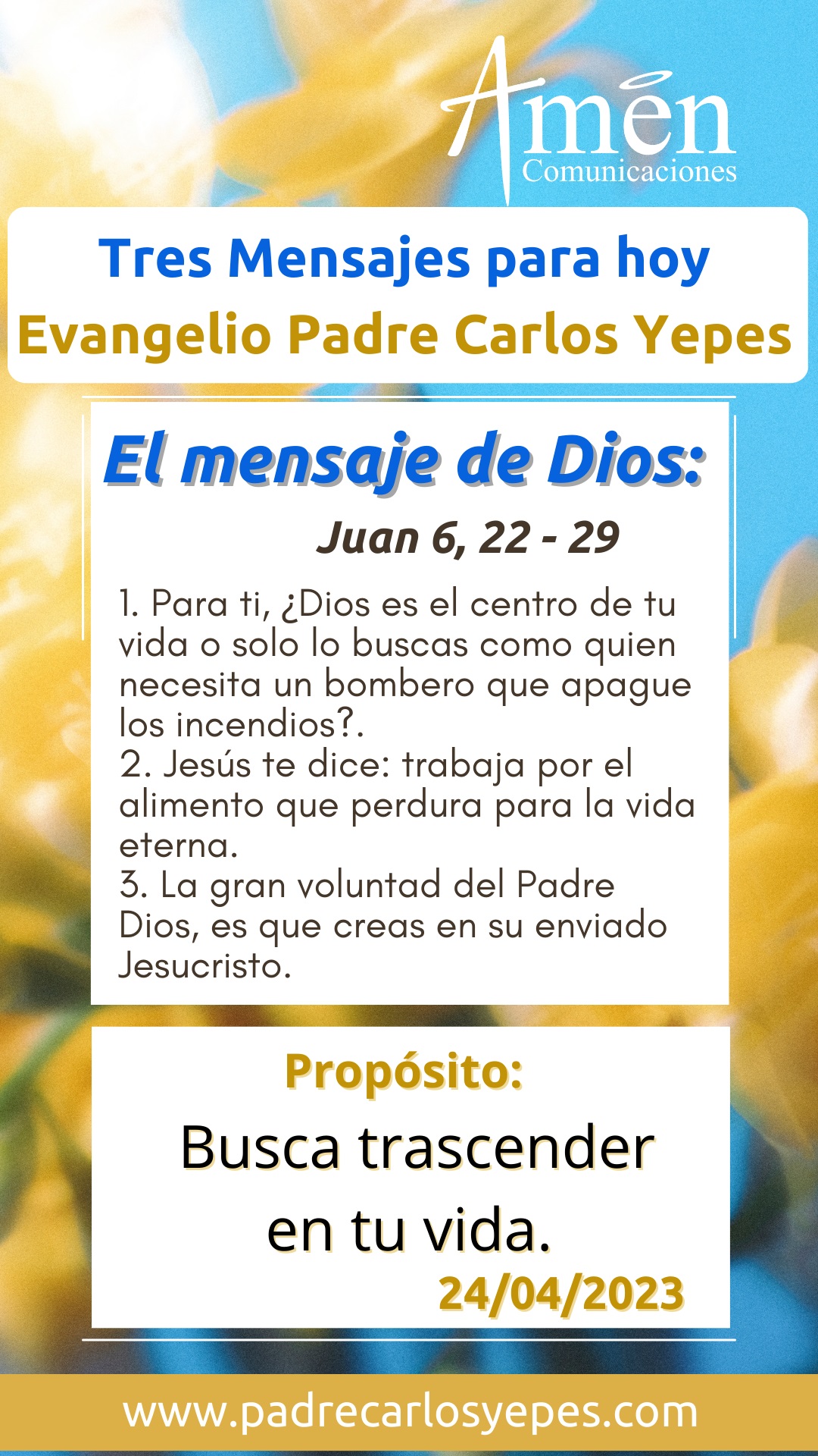 Hoy descubre que la gran voluntad del Padre Dios, es que creas en su enviado Jesucristo y como decía el mismo Pablo, “que tengamos los mismos sentimientos de nobleza, de amor, de perdón, de solidaridad que tuvo Jesús para con todos, especialmente para con los más pequeños y necesitados”.