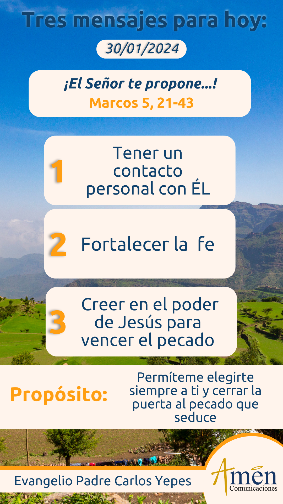 Hoy entiende más allá de esta imagen si se quiere un poco alegórica y no mirada solamente en su materialidad, la materialidad del texto, que el Señor nos invita a tener un contacto personal, directo con Él, para sanar de nuestras enfermedades, para superar nuestras muertes interiores. No faltará quienes nos desanimen, como ocurrió en casa de Jairo, cuando su hija la tomaban ya por muerta, unos se lamentaban y a la palabra de Jesús de que la niña no está muerta sino dormida, simplemente los descreídos que acompañaban a la familia de Jairo, sueltan la risa a carcajadas, se burlan de Jesús diciendo: “Este es un ignorante que no sabe nada”.