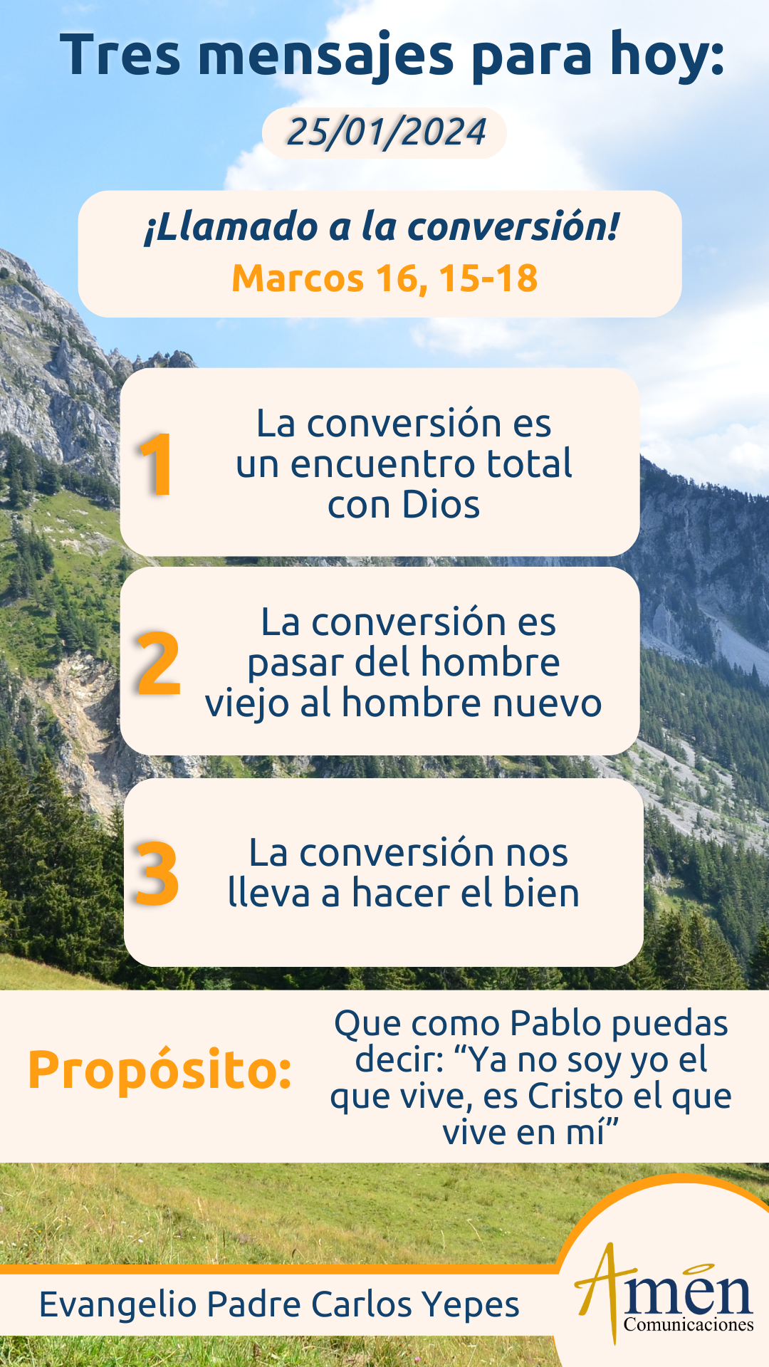 Esta es la conversión, este es el paso como dirá san Pablo: “Del hombre viejo al hombre nuevo”. Esta es la invitación que hoy te hago, renueva tu manera de pensar la vida y podría agregar, renueva los valores y principios orientadores y rectores de tu existencia, y renovando la forma de pensar, renovarás la forma y la manera de vivir.