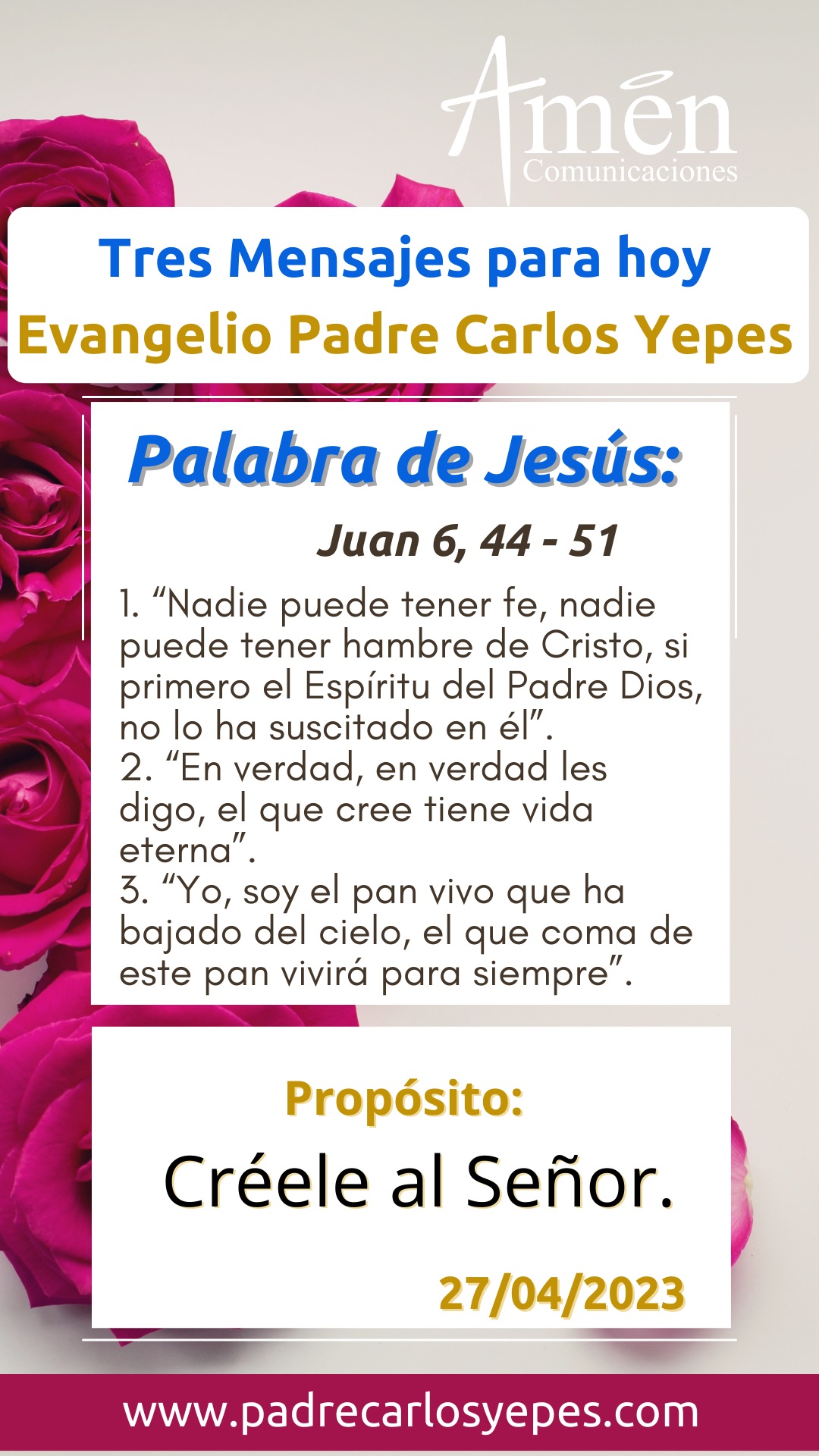 Jueves 27 de abril, continuamos en este tiempo precioso de la Pascua, la lectura de uno de los libros más hermosos del nuevo testamento, el libro de los Hechos o actos de los Apóstoles, que narra la naciente Iglesia, el cristianismo primitivo y las acciones que el grupo de apóstoles después de la muerte y sobre todo la Resurrección de Jesús, realizan con autoridad, con poder, generando solamente sorpresa y la alegría de una vida nueva que nos viene por la acción de Cristo muerto y resucitado.
