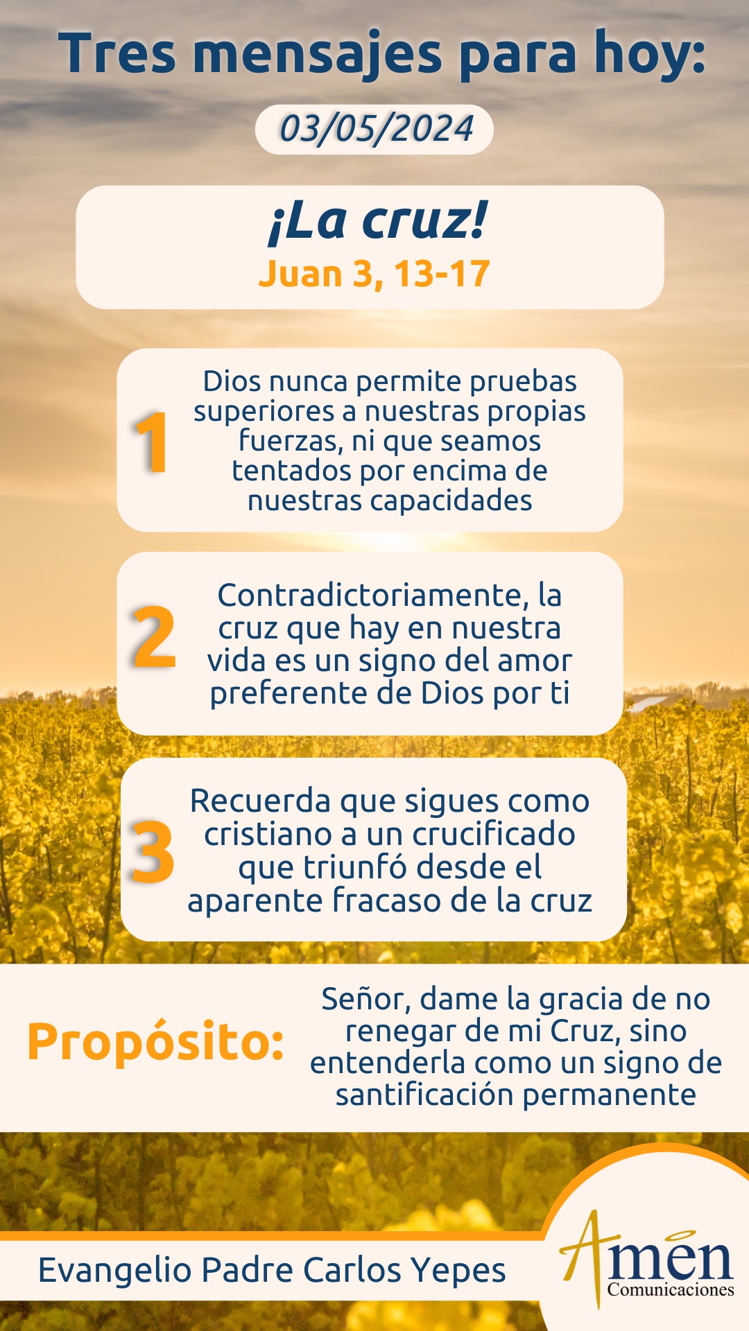 Hoy, en un momento de silencio reflexiona: si es tu pareja, si es tu temperamento difícil, si es tu afectividad desbordada, si son tus hormonas no controladas, si es una ambición desmedida, si es tu lengua murmuradora, si son celotipias y envidias, si es la incapacidad para amar y para perdonar, lo que se ha vuelto cruz en tu vida y te hace incapaz para morir a ti mismo, morir a tu orgullo, morir a tu propio yo.