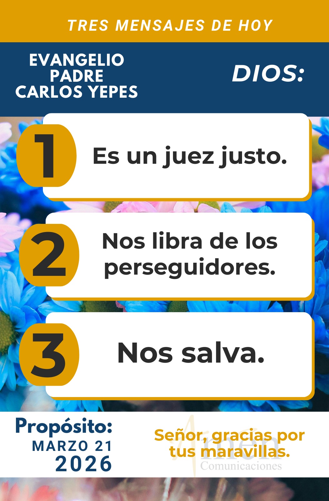 TRANSLITERACIÓN REFLEXIÓN PADRE CARLOS YEPES ¡Dios mío, a ti me acojo! La primera lectura tomada del profeta Jeremías nos muestra como él es perseguido por los de su propio pueblo, son sus mismos hermanos, los de la casa de su padre, los que le han traicionado. Y el dolor del profeta es símbolo de Cristo, y de alguna manera anticipa la Pasión de Cristo aplicada en la liturgia a la imagen del árbol derribado en su pleno vigor y lozanía. Hay en el profeta Jeremías la amargura de la traición que le arranca un grito de venganza a Dios, que conoce los secretos y las pasiones humanas, y se sirve de expresiones de los salmos para clamar justicia a Dios. Es que Jeremías, aún en el Antiguo Testamento, no ha conocido todavía el espíritu del Evangelio y la primacía absoluta de la caridad, incluso con los enemigos, con los detractores. Pero más allá de todo esto, al final Jeremías muestra como prevalece con todo su dolor, la confianza y la imagen emocionante del cordero manso llevado al matadero, que ha inspirado uno de los cánticos del Siervo de Dios en Isaías 53, y que lo ha hecho símbolo de la Pasión del Cordero de Dios. Hoy se nos invita a unir nuestros dolores al dolor de la próxima Pasión de Cristo que vamos a celebrar en Semana Santa y Pascua, y a entender que en medio de la prueba Dios no abandona, como dirá el salmo litúrgico de este día: “Señor, Dios mío, a ti me acojo, líbrame de mis perseguidores, sálvame. Que no me atrapen como leones y me desgarren sin remedio. Júzgame según mi justicia, según la inocencia que hay en mi alma. Cese la maldad de los culpables y apoya Tú al inocente. Tú que sondeas el corazón y las entrañas, Tú que eres el Dios justo”. Y culmina el salmo diciendo: “Mi escudo es Dios que salva a los rectos de corazón, Dios es un juez justo, Dios no nos amenaza cada día”. Que esta primera lectura de Jeremías y el salmo litúrgico 7 de este día nos preparen para comprender mejor el Evangelio de san Juan en el capítulo 7, cuando reconocemos que Jesús, con su vida y con su testimonio, cuestiona y formula un juicio al mundo donde divide los hombres y las opiniones humanas entre los que lo aceptan con un sí sencillo, simple, acogedor, y aquellos que lo rechazan de alguna manera con un no violento, sofisticado, tortuoso. Porque en el fondo muestran la ironía de que creyendo saber el origen de Jesús, ignoran su divinidad y creen poder acabar con Él desde el poder y desde el orgullo, pero olvidan que una coraza invisible le protege a Jesús y que la hora de su Pasión está decidida por otro más grande. Jesús, siendo así el perseguido, el humilde de Galilea, al mismo tiempo, es el Señor de su destino. Es que encontramos en este pasaje evangélico, como algunos discutían si Jesús es el profeta, el Mesías, el anunciado de todos los siglos. Pero al mismo tiempo se cuestionaban y ¿es que de Galilea, (en el norte de la actual Israel), puede venir el Mesías? Y otros dicen “no, la Escritura afirma que vendrá del linaje de David y del pueblo de David, que es Belén”. Y afirmará Juan “que así surgió una disputa, una discordia por causa del origen de Jesús, y aunque querían ponerle mano encima, no pudieron prenderlo”. Pero tal vez lo más perturbador de este Evangelio de san Juan en el capítulo 7, es que mientras los guardias del templo acuden a los sumos sacerdotes y fariseos llevando a Jesús y diciendo unas palabras ciertamente inquietantes nadie en la vida nos ha hablado como este hombre. Los fariseos con el corazón cerrado llaman a Jesús embaucador y dicen, aquellos que creen en Él, que son unos verdaderos malditos. Hoy te pregunto ¿quién en tu vida probada sus palabras, su verdad, su sabiduría a lo largo de los años ha hablado con la verdad, con la sabiduría y con la luminosidad con la que ha hablado Cristo en sus Evangelios a la humanidad entera a lo largo del tiempo? Hoy puedo decir, a partir de mi testimonio personal, nunca en mis años de vida, que no son pocos, jamás nadie ha hablado como Jesús, jamás nadie ha tenido tanta sabiduría como Jesús, jamás nadie ha tenido tanta luz en su corazón como Jesús. Por más que su mensaje, su palabra, su luz, su sabiduría resulten una locura, una necedad para los hombres y mujeres del mundo. Hoy, aunque algunos llamen a Jesús y a la Iglesia embaucadores, Ella ha permanecido en los mares de la historia por 2000 años, ha prevalecido sin ejércitos, con grandes poderes temporales persiguiéndola, señalándola. Pero los verdaderos hijos del Reino, los verdaderos hijos de la Iglesia aun han afirmado con su vida, con su testimonio personal, nadie nos ha hablado en la vida como Cristo, nadie ha dicho tanta sabiduría como Él. Y podemos decir, tomando las palabras del apóstol Pedro: “Señor, ¿abandonarte a ti?; a ¿quién acudiremos?, a ¿quién buscaremos? Sólo en ti encontramos palabras de verdad, palabras de sinceridad, palabras de vida verdadera, de vida eterna”. Hoy te pregunto ¿de qué lado estás?, ¿de los que llaman a Jesús y a la Iglesia de Jesús embaucadora?; o ¿de los que dicen nadie en la vida, ninguna ideología, ningún líder político, ningún académico o intelectual, ningún influenciador en redes sociales ha hablado tan profunda y directamente a mi corazón, ha iluminado mi existencia, y le ha dado sentido y plenitud a la misma, como lo ha hecho Jesús en la Palabra consignada de forma escrita y solemne en los Evangelios, que ha custodiado la Iglesia por 21 siglos? Al final del texto de hoy se nos presenta la figura de Nicodemo, un fariseo creyente en Jesús, que siempre lo visitaba de noche por respetos humanos a los suyos. Y afirmará: “¿acaso nuestra ley permite juzgar a nadie (hablando de Jesús) sin escucharlo primero y averiguar lo que ha hecho?” A lo que responden sus colegas ciegos los fariseos “¿acaso tú eres galileo como los demás? Estudia las Escrituras y verás que de Galilea no pueden salir los ve
