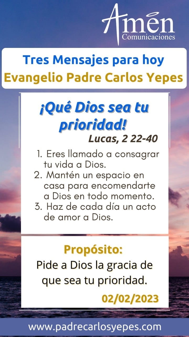 Pero apropósito de esta jornada mundial de oración por los consagrados, saquemos tres sencillas enseñanzas para nuestra vida. La primera: tú y yo, laico o sacerdote, empleado o desempleado, joven o mayor de edad, estamos cada uno de nosotros llamados a consagrar nuestra vida a Dios y te propongo de manera concreta un primer aspecto: saca tiempo diario para el Señor, saca un tiempo preciso si deseas al levantarte, quince minutos, ojalá media hora, saca un tiempo con calidad, ojalá pudieras participar de la Eucaristía de cada día o sino hacer el Rosario en tu casa, o sino leer un salmo o un texto evangélico cada día.