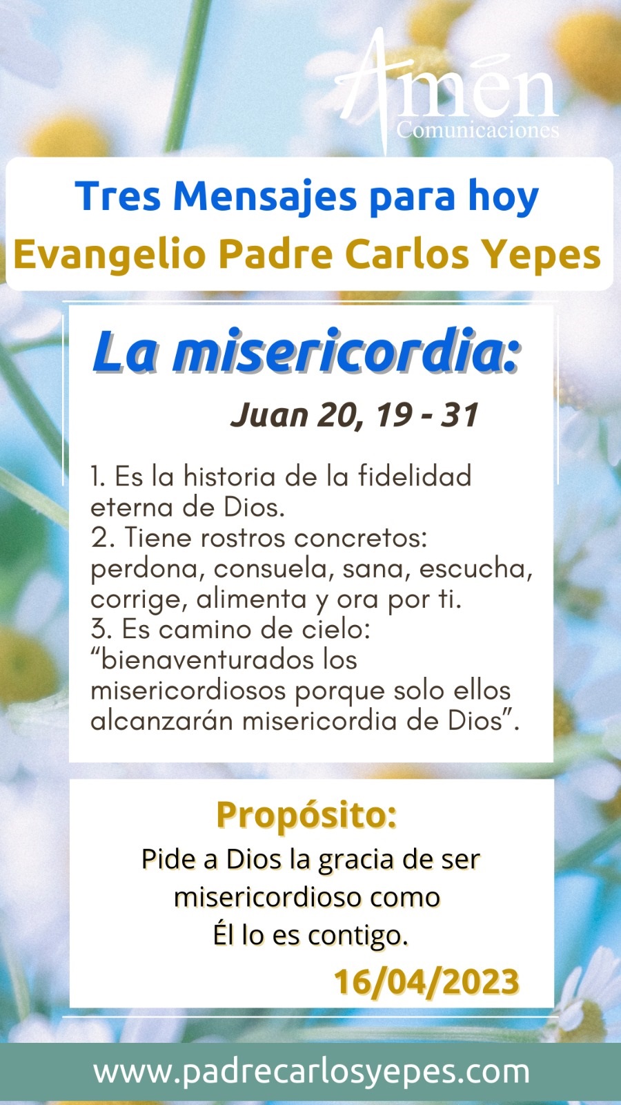 En este segundo domingo de Pascua o llamado domingo de la Misericordia, celebramos de manera privilegiada el amor inmenso, inquebrantable, incondicional de Dios por el ser humano, misterio de compasión divina, que nace justamente del costado abierto de Jesús en viernes Santo.