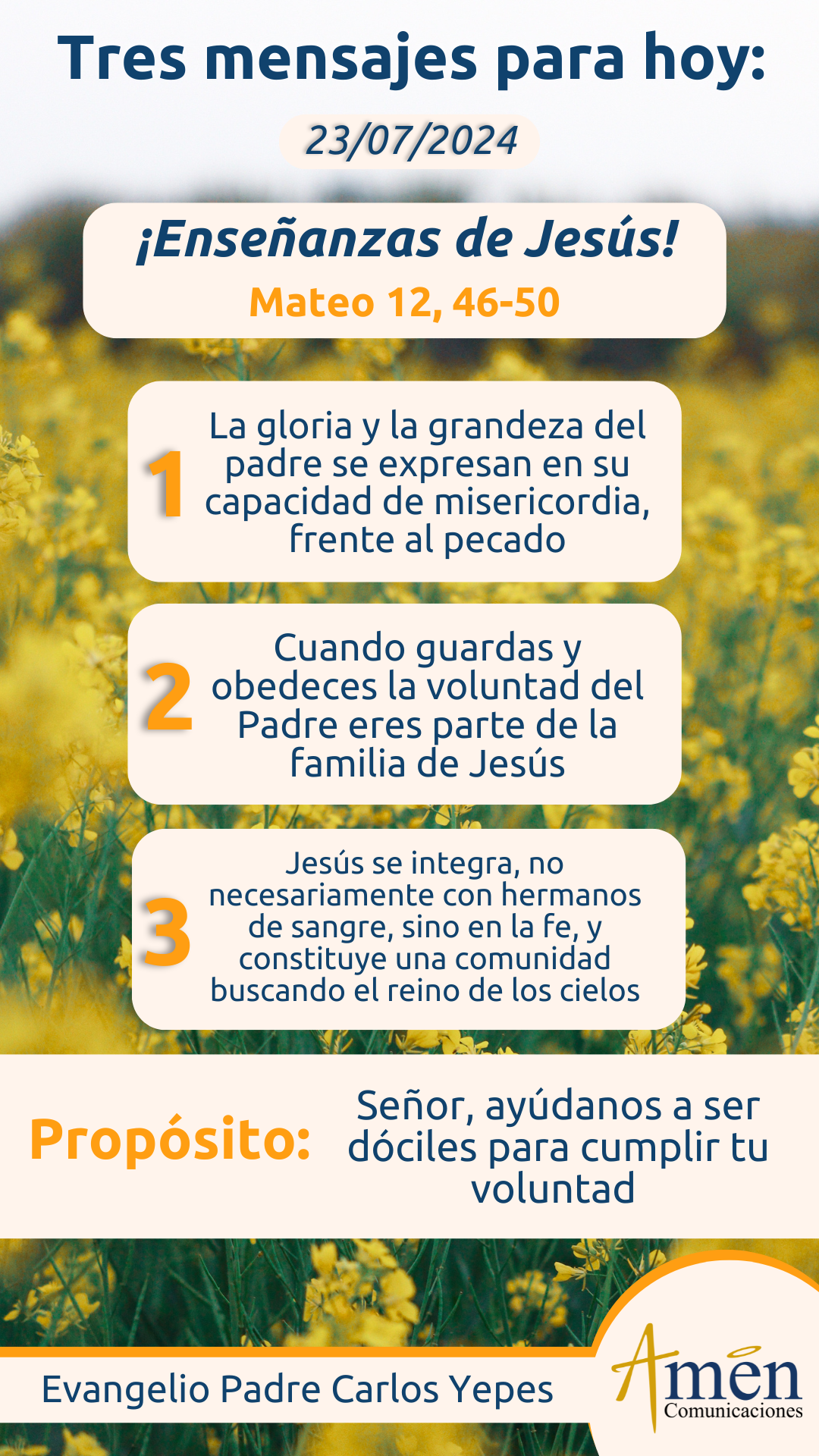 Hoy haz eco de estas palabras y reconoce que, si quieres ser del círculo, (permíteme la expresión), privilegiado de la familia, de lo más querido por Jesús, sólo lo podrás alcanzar, si haces, si guardas, si obedeces y obedecemos la voluntad del Padre que está en los cielos.