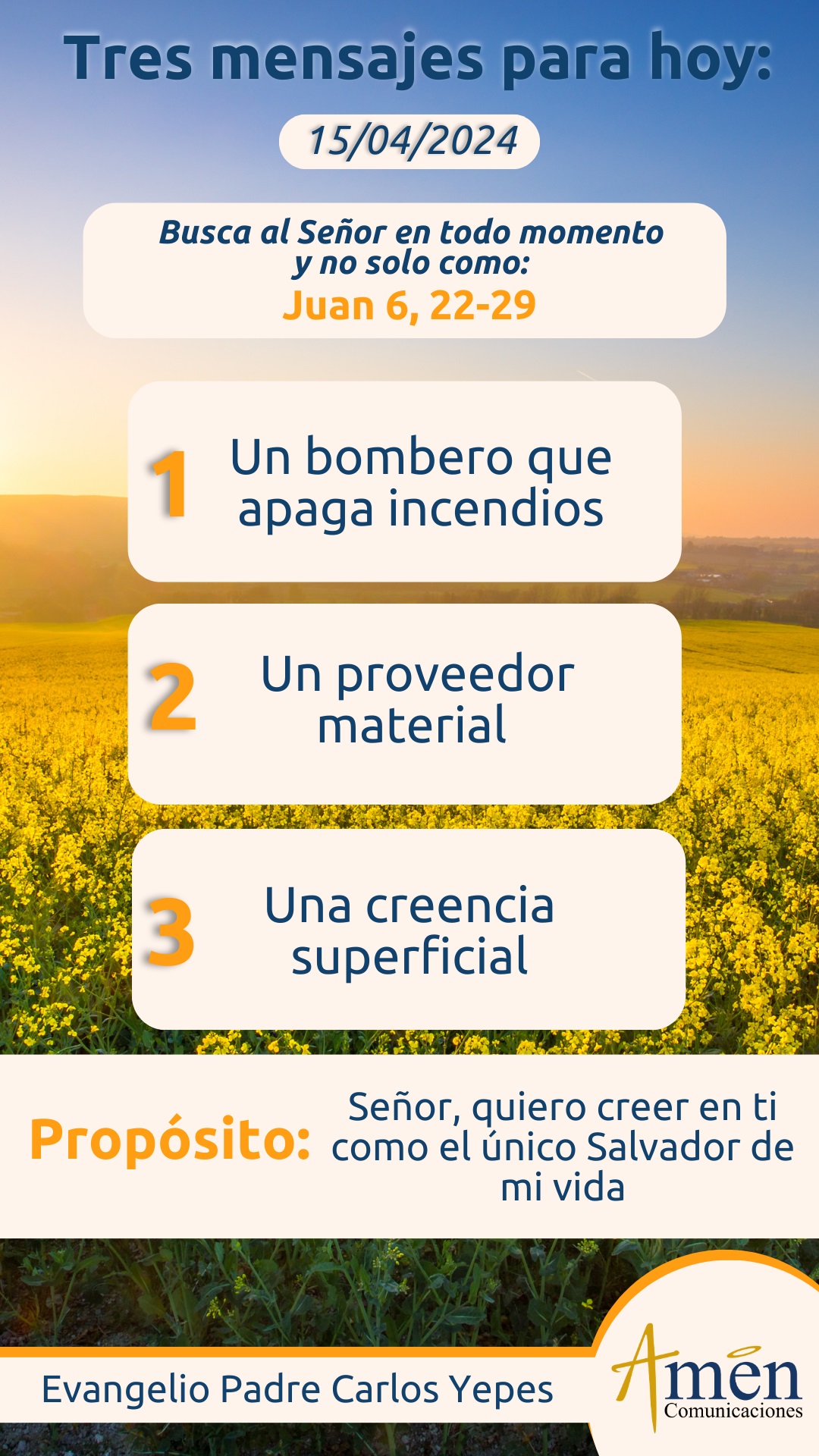 La primera, la gente impresionada busca afanosamente a Jesús, Él, con claridad muestra la inmadurez y el interés de la fe de la gente, que sólo lo busca por el pan material que les ha dado. Sus palabras no pueden ser más explícitas: “En verdad, en verdad les digo, ustedes me buscan no porque han visto signos, sino porque comieron pan hasta saciarse”. Hoy reconocemos que buscamos en no pocas ocasiones al Señor, como el bombero que apaga incendios, como aquel que necesitamos en circunstancias y situaciones puntuales y luego lo olvidamos. Estamos llamados a una fe más profunda, más madura, una fe más sólida, movida sobre todo por el amor al Señor, e inspirada en que Él es el modelo universal de humanidad para todos nosotros. No te quedes simplemente buscando del Señor cuando lo necesitas a conveniencia, a interés personal y luego lo dejas, lo ignoras o te vuelves indiferente, búscalo cada día, búscalo con afán, búscalo con amor fiel.
