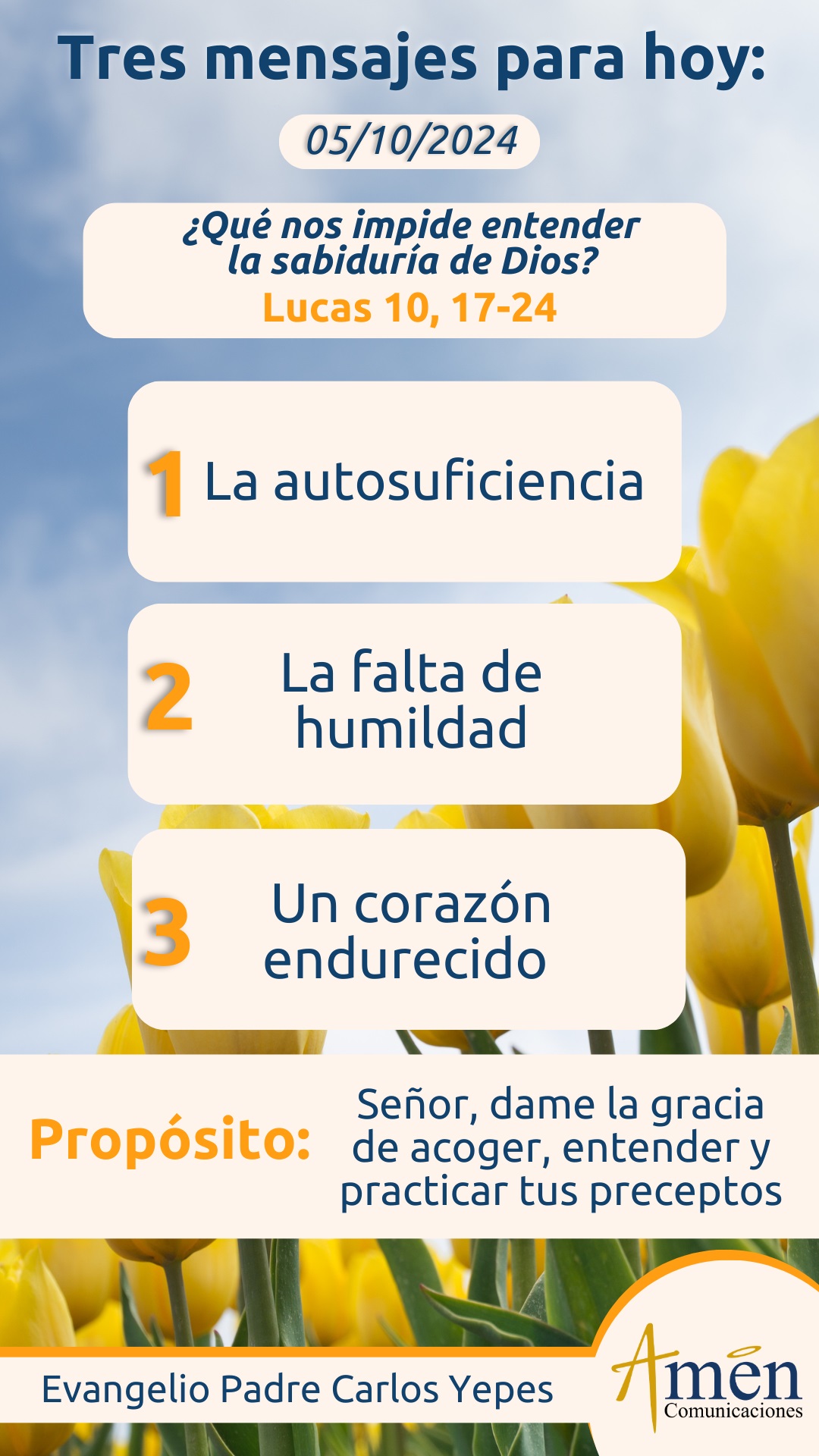 Hoy entendamos que la sabiduría de Dios no es para todos, que aquellos que, con orgullo, quizás un poco de autosuficiencia por la belleza, la juventud, el conocimiento, el dinero, todo aquello que hincha y enorgullece al hombre, nos aleja de entender plenamente el mensaje del evangelio y la sabiduría de Cristo, sólo manifestada y sólo descubierta a los pequeños y simples de corazón. Nunca verás un santo lleno de orgullo y por el contrario, la historia de la Iglesia y la historia de todos los gigantes en la Biblia, fue la historia de los pequeños de Dios. Desde Moisés, desde el viejo y anciano Abraham, desde la dulce y humilde María, desde los sencillos pescadores en el mar de Galilea, pasando por todos los santos que más allá de talentos, destrezas y capacidades, fueron molidos como el grano de trigo y preparado su corazón para que pequeño y humilde, acogiera y aprendiera toda la sabiduría de Dios manifestada en la Persona Divina, en la vida y las acciones, las palabras y la Pascua del mismísimo Jesucristo.