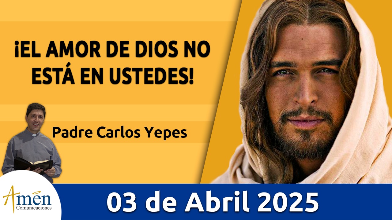 TRANSLITERACIÓN REFLEXIÓN PADRE CARLOS YEPES La primera lectura del Libro del Éxodo en el capítulo 32, nos muestra como el pueblo de Dios, el pueblo elegido y amado por el Señor, apostata de la Alianza que había sellado a través de Moisés en la montaña del Sinaí, entregándoles en dos tablas de piedra las diez leyes o preceptos fundamentales, a partir de los cuales iban a tener una sociedad, una forma de pueblo que viviera armónica y justamente. Pero el pueblo, olvidándose de la alianza de Dios que le guiaría, le sustentaría, le protegería, le sostendría, se hacen becerros de oro a partir del metal fundido, tomado de elementos artesanales de cada uno de los miembros del pueblo. Funden en una gran masa y con figura del becerro, un ídolo al que quieren adorar y al que quieren reconocer como el dios de sus vidas. Nos dice el libro del Éxodo que se enciende la ira de Dios, pero de manera dramática ante el castigo divino por la idolatría de su pueblo, de manera dramática y conmovedora, Moisés intercede por su pueblo, empleando primero el reconocimiento que Dios tiene no sólo entre el pueblo elegido, Israel, sino entre los pueblos o naciones paganas. Y en un segundo momento, acudiendo a la promesa de fidelidad que había hecho desde siempre Dios a través de los grandes patriarcas, Abraham, Isaac y Moisés, ante la súplica conmovedora de Moisés cuando dice: “Aleja el incendio de tu ira, arrepiéntete de la amenaza contra tu pueblo, acuérdate de tus siervos los patriarcas y la promesa de multiplicar su descendencia como las estrellas del cielo”, nos dirá el texto del Éxodo: “Que Dios se arrepintió de la amenaza que había pronunciado contra su pueblo”. A veces, cuando sentimos “que se nos viene el Cristo de espaldas” (como decían las abuelas), que se nos juntan todas las malas situaciones en un momento determinado, quizás es la circunstancia y el tiempo para reflexionar en qué nos hemos equivocado en la vida y reconocer como dicen textos de la carta a los hebreos o del mismo apóstol Santiago: “Dios pone a prueba a sus elegidos”, y aunque nadie quiere castigos ni reproches porque ellos duelen, en el fondo son pedagogías, modos educativos que Dios emplea para llamarnos a la conversión, a la renovación, a la transformación de nuestra vida. Hoy te reitero, si sientes que hay un mal momento en tu existencia, te invito a que no reclames a Dios airadamente, a que con soberbia no te iguales a Él y digas: no te volveré a rezar, me olvidaré de ti, no volveré a la Eucaristía en mi parroquia, porque tal vez nos hemos equivocado y a partir de una situación que nos parece humanamente dolorosa y contraria a nuestros proyectos, el Señor nos está educando. Clamemos a Él, pidamos su bendición, su benevolencia y con espíritu contrito y arrepentido, muy propio de este tiempo de la Cuaresma, con seguridad que obtendremos el favor y la bendición de Dios. Pero pasemos al evangelio de san Juan en el capítulo 5, cuando en una eterna disputa de Jesús con sus discípulos y concretamente de Jesús y los discípulos contra el pueblo de Israel, ellos no reconocen la autoridad de Jesús, no reconocen que sus obras puedan venir de Dios. De alguna forma, es la incredulidad de todos los tiempos, la dureza de corazón eterna del hombre que es capaz de reconocer glorias humanas, grandezas en otras personas, pero no es capaz de reconocer la gloria y la grandeza de Dios. Jesús, ante su incredulidad los cuestiona y de ser juzgado pasa a ser juez de los suyos, de los juzgadores, y les dirá en un primer lugar: “Miren como Juan el Bautista, el precursor, anunció que venía uno que es más importante que todos los demás profetas y al cual Juan ni siquiera merecía desatarle la correa de las sandalias”. Pero en un segundo argumento pide estudiar el testimonio de las Escrituras y la misma ley de Moisés, y convencerse de que en la Sagrada Biblia estaba profetizada, anunciada la venida del Mesías, que haría las obras del Padre Dios. En un tercer argumento, Jesús les dirá: “Que, si no creen a sus obras de sanación, de curación de ciegos, sordos, leprosos, paralíticos, por lo menos crean en las obras que el Padre de los Cielos hace a través de Él y que dan testimonio de la verdad, la veracidad que le acompaña en su vida”. Pero me llama poderosamente la atención cómo Jesús señala: “Los conozco (hablando de los judíos) y sé que el amor de Dios no está en ustedes”. Hoy me quedo pensando en esa expresión y viene a mi memoria la expresión también de san Juan cuando dice: “En esto consiste el amor, en que Dios tomó la iniciativa, en que el Señor nos amó primero”. Hoy reconozco en mi vida y te invito a que mires tu propia existencia y descubras que la experiencia más alta, más auténtica, más profunda del sello del cristiano, es la impronta del amor divino en su alma, hasta llegar a transformar y renovar con libertad y gozo la vida de cualquier ser humano, más allá de esclavitudes y oscuridades, tristezas y heridas por el pecado personal. Hoy te invito para que reconozcas que no eres católico, no eres cristiano, no eres creyente, no eres hijo de Dios, porque sepas un poco de teología, de catecismo, de ritualidad litúrgica, de normas morales evangélicas, de dogma o conceptos cristianos; sino que solo se es verdadero católico, cristiano y creyente cuando hemos experimentado de manera profunda, transformante y duradera el amor redentor de Dios manifestado en Cristo Jesús. Te lo diré en otras palabras, si experimentas que has sido levantado de caídas, sanado de heridas, liberado de ataduras, redimido de tu pecado, no creas que es la acción personal, el mérito propio desde lo humano, sino que es la obra del amor de Dios. Le escuchaba a un viejo y sabio sacerdote esta expresión: “A uno sólo lo cambia profundamente el amor de Dios”. Es que cuando experimentamos de manera radical y lo repito profunda en el alma humana, la ternu
