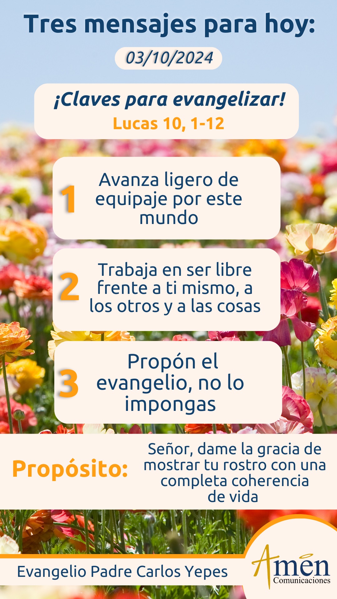 Señor, gracias por esta palabra, ayúdanos a ser anunciadores de una vida nueva con el testimonio de la propia vida, con la unción de nuestras palabras y con nuestra actitud de amor y paz que iluminará la vida de muchos.