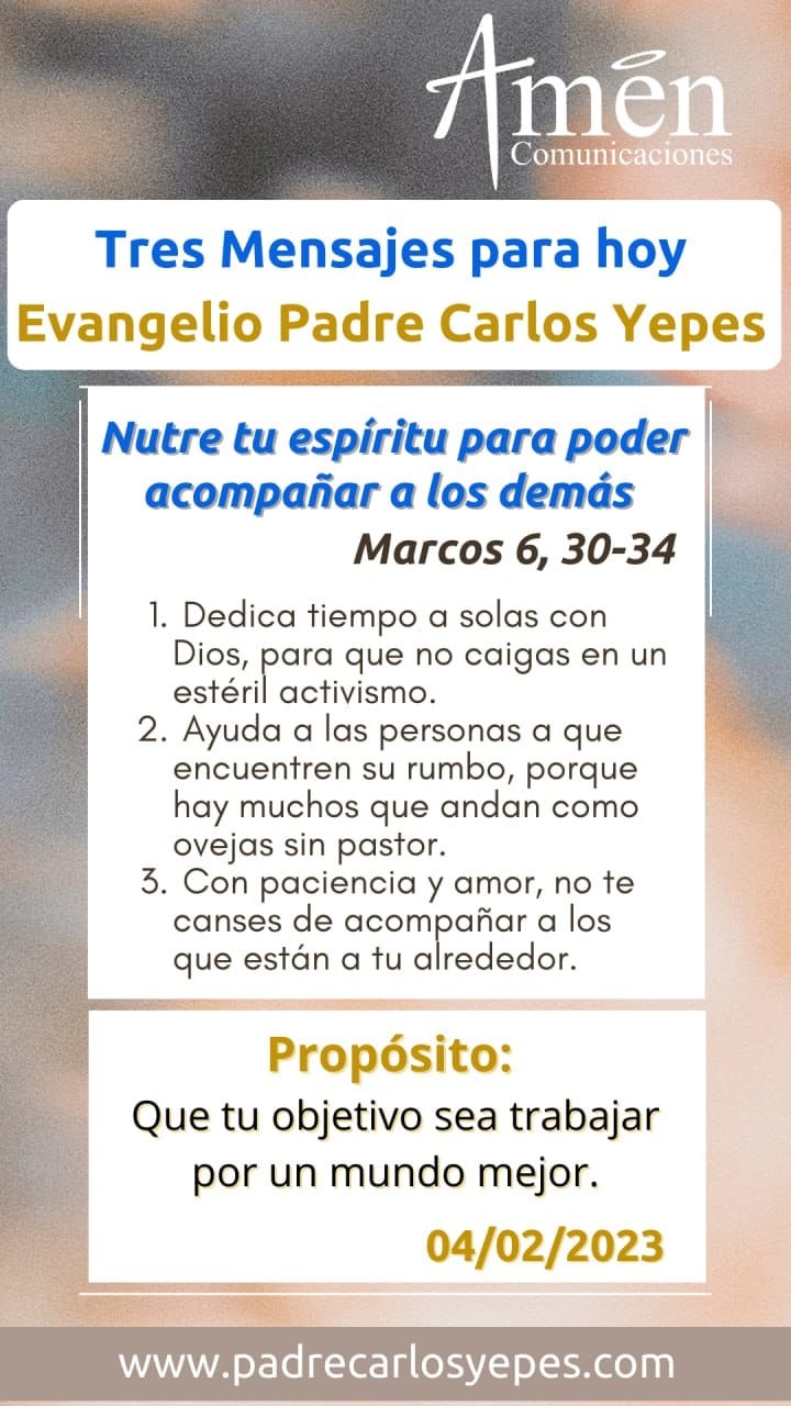 Pero vámonos al Evangelio que hoy nos presenta san Marcos: efectivamente, nos habla de una jornada en la vida de Jesús, como invita a sus discípulos a un lugar tranquilo a descansar. Jesús como nadie, experimentó el peso y la fatiga de las tareas evangelizadoras, sintió como la multitud enloquecida, enloquecida, en la búsqueda espiritual, tratando de encontrar sentido para su vida le seguía.