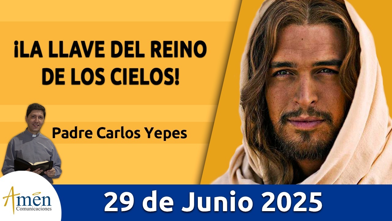 ¡Dichoso tú, Simón, hijo de Jonás!, porque eso no te lo ha revelado nadie de carne y hueso, sino mi Padre que está en el cielo. Ahora te digo yo: Tú eres Pedro, y sobre esta piedra edificaré mi Iglesia, y el poder del infierno no la derrotará. Te daré las llaves del reino de los cielos; lo que ates en la tierra quedará atado en el cielo, y lo que desates en la tierra quedará desatado en el cielo.