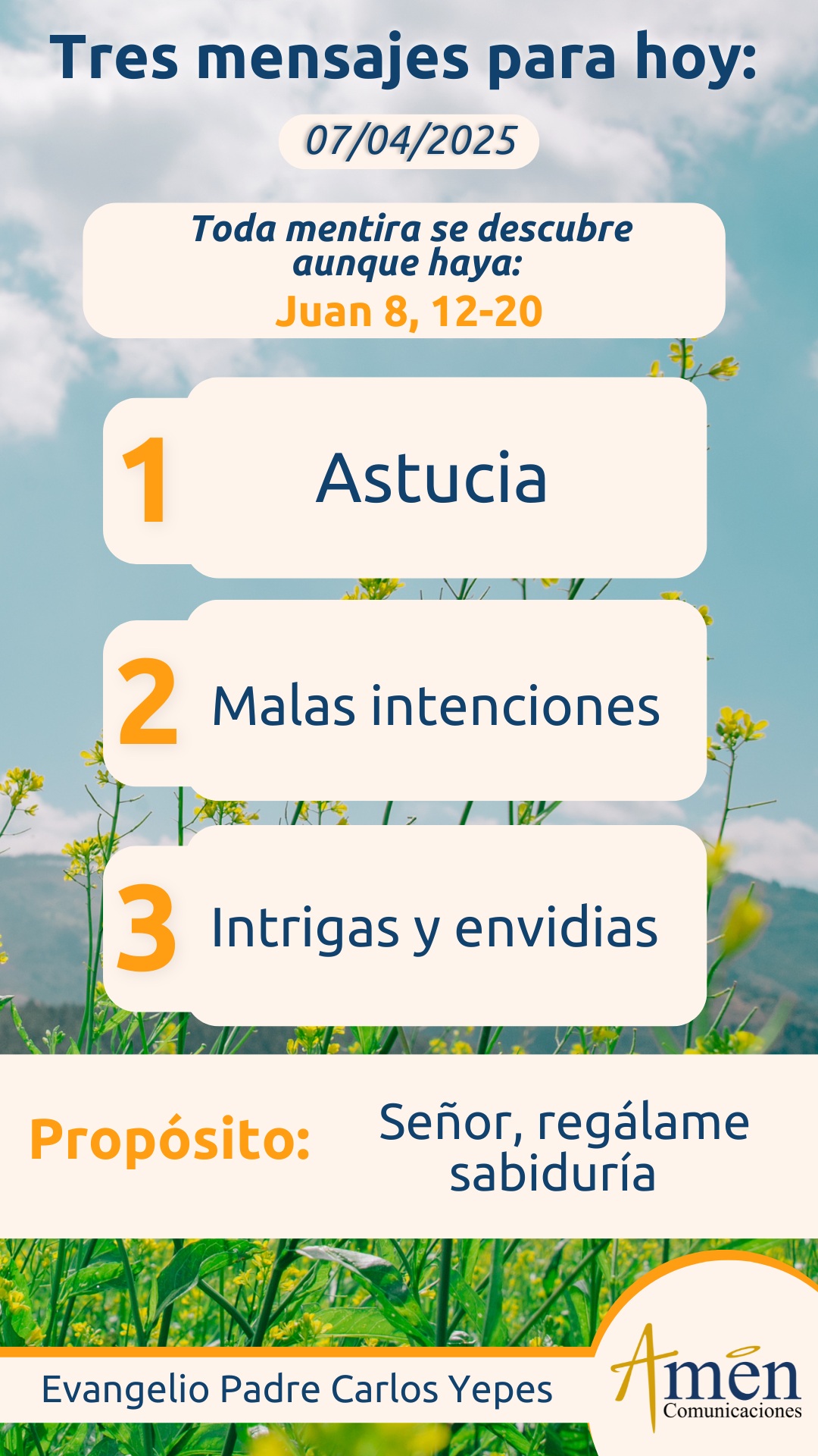 TRANSLITERACIÓN REFLEXIÓN PADRE CARLOS YEPES El capítulo 13 del profeta Daniel, es sin lugar a duda, uno de los más impresionantes textos que nos hablan sobre la falibilidad, lo equivocados que son los juicios y la justicia humana, y como Dios al final descubre, desenmascara, desvela las intrigas humanas que se han dado en todas las épocas y en nuestro mundo con mayor fuerza, reconocemos los fallos de la llamada justicia de los hombres. En efecto, en un relato extenso y detallado por demás, se nos habla de la casta Susana, una joven mujer casada con un hombre justo, Joaquín, que había sido educada en la ley de Dios. Por su belleza y víctima tal vez de su hermosura personal, dos viejos jueces, aparentemente prevalidos de la autoridad, de la credibilidad y del reconocimiento que tenían en su pueblo, entre los suyos, atisban, acechan a esta mujer cuando en los jardines de su casa en solitario se baña desnuda y llenos de lujuria, buscan estar sexualmente con ella. Ante el rechazo de esta mujer, salvando su castidad matrimonial, los viejos intrigantes y por pura y dura maldad, la chantajean, la extorsionan, diciéndole: “Si no nos aceptas sexualmente, diremos que has cometido adulterio con un hombre joven, y sabes que la pena que debes de pagar es la ejecución, morir lapidada, morir apedreada, la pena capital”. Susana se siente entre la espada y la pared, pero prefiere ella antes que acceder a las pretensiones sexuales de estos dos viejos sinvergüenzas, ella prefiere ser fiel a Dios y exponerse a la lapidación, el apedreamiento público. Camino a su ejecución, un joven lleno del Espíritu Santo de nombre Daniel, dice: “Que él no puede ser cómplice del delito o del crimen que se va a cometer sobre esta mujer”, y pide una nueva entrevista a sus acusadores, los coloca en lugares independientes y reconociendo la malicia que dan los años y tal vez cierto puesto de autoridad que tenían entre el pueblo, (y a más de que el testimonio de dos hombres se consideraba como creíble y suficiente para ejecutar a una persona), por aparte los interroga y les pregunta ¿dónde fue que esta mujer, Susana fue accedida carnalmente por un joven cometiendo adulterio?. Uno de ellos dirá: “Debajo de un árbol de acacia”, otro dirá: “Debajo de un árbol de encina”. Entrarán inmediatamente en contradicción sus testimonios, se caerá las acusaciones que caían contra ella. E inmediatamente el texto del profeta Daniel nos dice: “Que él lanza un juicio de vida absolviendo a Susana y un juicio de muerte condenando por perjurio, por falso juramento a los dos viejos sinvergüenzas”, un claro abuso de autoridad sobre una persona desvalida. Pero esta historia de hace miles de años y consignada en el Antiguo Testamento, en el libro de Daniel, no es tan extraña a nuestro tiempo, están a la orden del día los escándalos, los juicios contra personas que hemos conocido como dignas, rectas, justas en sus actuaciones. Pero aparecen esos carteles de falsos testigos que señalan y acusan a una persona aquí y allá. Se da en el mundo militar de las Fuerzas Armadas, se da en el mundo de las empresas, el sector privado, se da en el mundo de los gobernantes, la sociedad de los políticos, y se da en el mundo eclesial de la Iglesia, donde no pocos han sido a veces acusados por intrigas internas, envidias internas, celos internos y también por claros abusos de autoridad y animadversión contra hombres o mujeres buenos dentro de la Iglesia. Pero avanzando en este texto, entendamos verdades fundamentales para nuestra vida. La primera, siempre en el mundo, como el trigo y la cizaña habrá inocentes como la casta Susana, y habrán también personas maliciosas, lujuriosas y falsas, como los viejos y “creíbles jueces”, porque prevalidos de la autoridad que tenían, fungían y fingían ante los demás ser personas probas, íntegras, cuando eran todo lo contrario y habían abusado de su poder. Que llamado de atención tan grande justo en esta semana que iniciamos de Pasión o de dolores, cuando Jesús en la próxima semana, la semana Mayor será ejecutado por un abuso de autoridad y como Susana iba a ser ejecutada por un falso testimonio y un abuso de autoridad de aquellos que, repito, fungían ante la sociedad como hombres creíbles. Pero hay una segunda verdad, mi madre recordando a la abuela (la madre de mi madre) decía: “El diablo hace las ollas, pero no las tapas”, queriendo decir que el diablo maquina entrampamientos, falsedades, calumnias, falsos positivos, pero en el fondo al final, cuando se hurga, se investiga con la fuerza y la luz del Espíritu Santo, encontramos que no todas las huellas las deja cubiertas el maligno y que por más que sea astuto, al final se descubre la falsedad, la mendicidad, las intrigas, las envidias con las que han obrado normalmente los acusadores de todos los tiempos. Finalmente, en una tercera enseñanza, encontramos que Dios hace justicia al inocente, desenmascara los juicios inicuos y engañosos de algunos hombres que se dicen a sí mismos prudentes y sabios, y muestran como la justicia humana siempre será falible, pero ante la luz de Dios (y lo vemos en el evangelio de hoy), cuando Jesús dice: “Yo soy la luz del mundo, el que me sigue no camina en tinieblas, sino que tendrá la luz de la vida”, es exactamente la luz que tuvo el profeta Daniel, la luz de Dios para que no se cometiera una injusticia, para que no hubiera un abuso de autoridad por parte de aquellos que tenían un reconocimiento social. Y como termina bellamente el texto de Daniel capítulo 13, dirá: “Aquel día se salvó una vida inocente”. Señor, danos la claridad para no dejarnos manipular, engañar por los intrigantes de todos los tiempos, tengamos mucho cuidado con aquellos que se la pasan aquí y allá, supuestamente acusando, denunciando con hipocresía, tal vez están colocando reflectores en otro lugar y desviando la atención como cortinas de humo de su propio peca