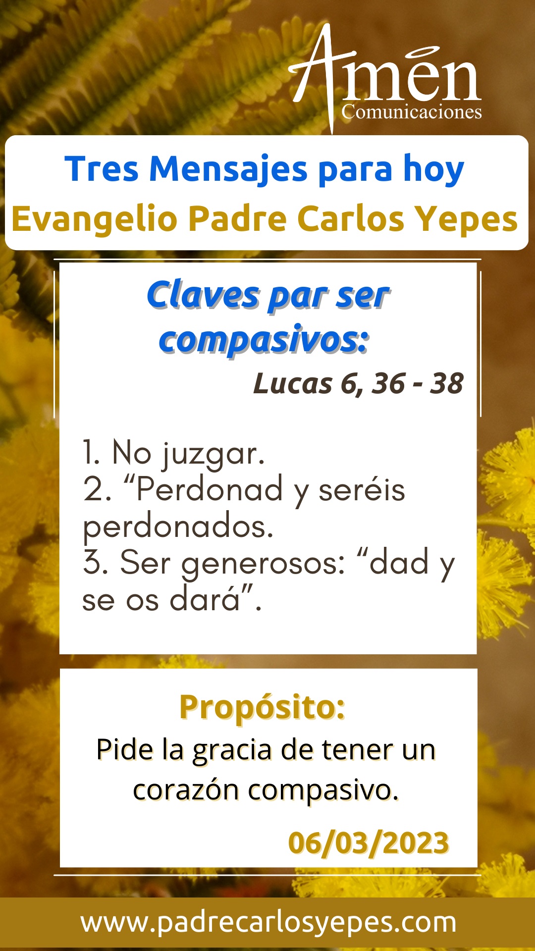 Que este salmo responsorial y su meditación, la meditación del texto nos prepare, para reconocer el contundente texto evangélico de hoy, tomado del capítulo 6 de San Lucas, cuando Jesús a nosotros nos invita a través de sus discípulos a ser compasivos con los demás, con la miseria que encontremos en los otros como el Padre de los cielos es compasivo con cada uno de nosotros. Con qué facilidad juzgamos en nuestro pensamiento, sentimos prejuicios en nuestro corazón frente a otros, o hablamos equivocadamente sobre los demás, ya el apóstol Santiago nos ha advertido, quién no juzga por la lengua, quién no comete pecado por su lengua es varón, o es mujer perfectos.