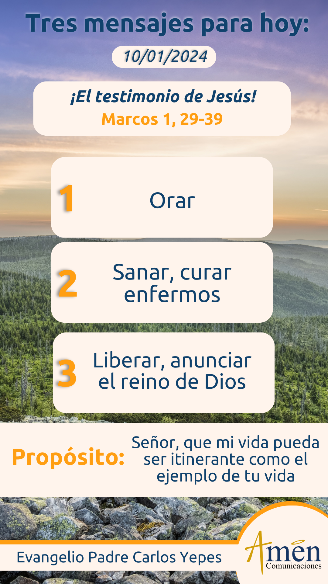 Descubrimos que Jesús, no hace nada distinto, sino de uno, orar, dos, sanar, curar enfermos, tres, exorcizar, liberar del mal, cuatro, anunciar como caminante, anunciar como itinerante en las sinagogas de Galilea, el reino de Dios, el mensaje de amor y misericordia, y las relaciones de perdón y servicio, que debemos de tener los seres humanos entre nosotros. Este evangelio es simplemente una extensión, del llamado que en su momento hace Dios al niño Samuel, cuando servía siglos atrás (antiguo testamento), en el templo de Jerusalén, al lado del sacerdote Elí.