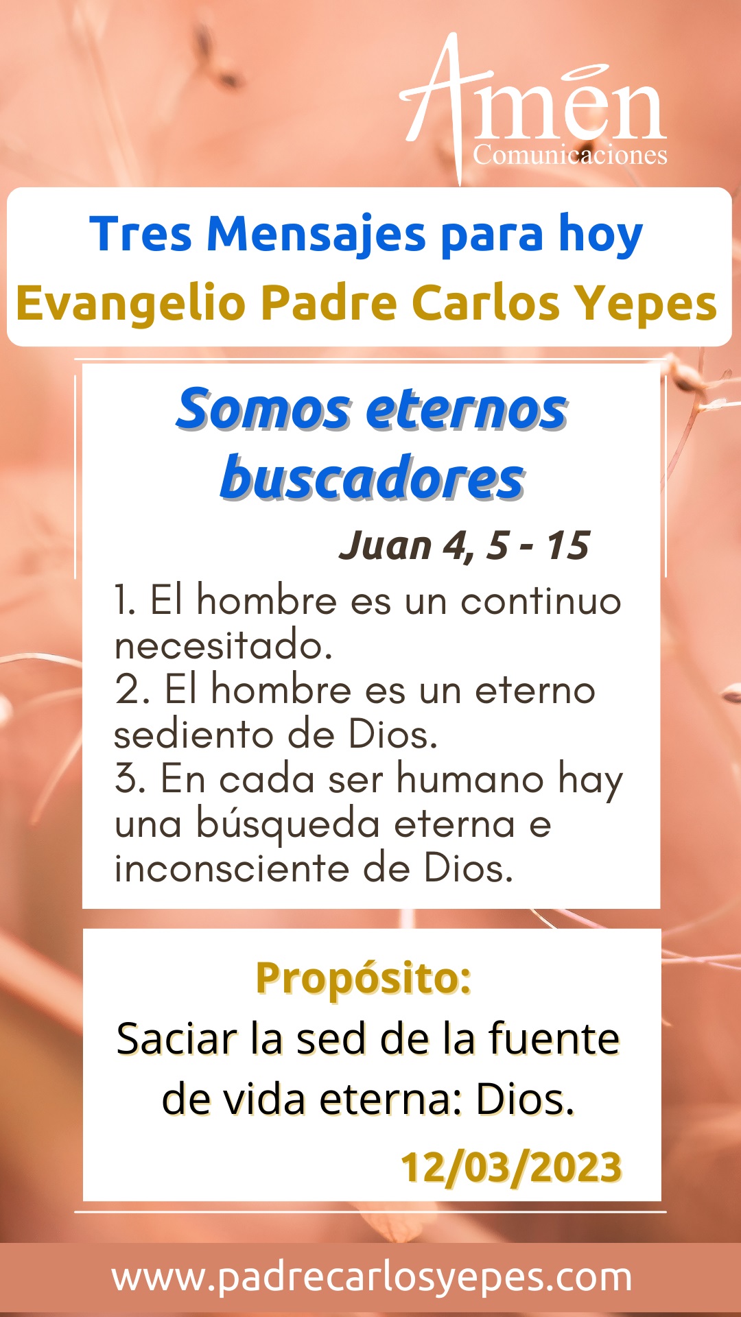 Hoy reconocemos, que somos eternos buscadores a lo largo de la vida, pero buscamos ese amor, esa paz, esa justicia, esa alegría, esa verdad, esa infinitud, esa vida abundante, la buscamos en las cosas caducas y finitas del mundo y solo lo encontramos en otro infinito Dios.