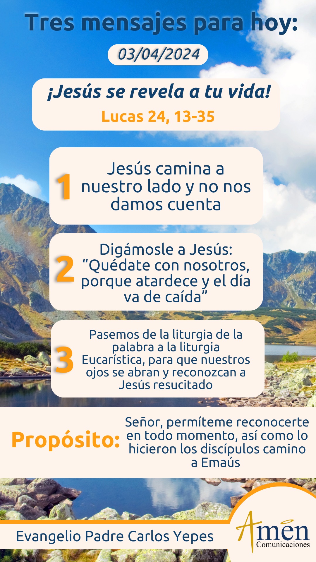 Hoy descubre que escuchar la Palabra de Dios te hace arder el corazón, pero sólo celebrar la Eucaristía, participar del momento sublime de la consagración eucarística y comer a Jesús Pan de vida como Él nos invita en Juan capítulo 6, te permite evidenciar la vida nueva del Resucitado. Qué hermosísima catequesis pascual, que nos muestra como la Eucaristía, la Misa de cada día, es por excelencia el sacramento pascual que nos llena de la vida nueva, donde somos cristificados, porque nos alimentamos con el Pan de Vida Eterna.