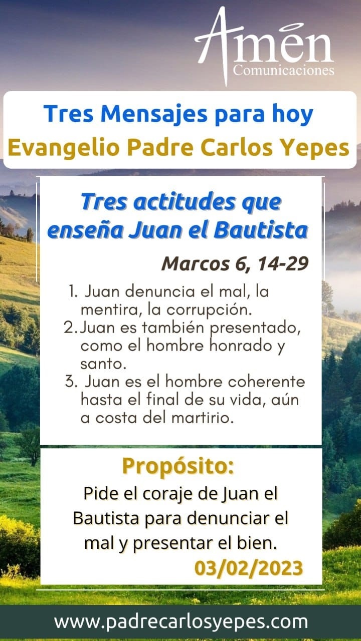 Pero ahora ocupémonos del Evangelio que nos presenta precisamente San Marcos, cuando nos habla de la gran dificultad que tenían los hombres para entender el misterio de la persona divina de Jesús. En efecto, unos lo confunden con Juan el Bautista, que ha resucitado después de su martirio, otros piensan que es el gran profeta Elías del antiguo testamento fallecido siglos atrás, u otros piensan que es un gran profeta que ha enviado Dios a su pueblo. Juan el Bautista, de alguna manera, quiere presentarse como la voz que anuncia al que es la verdadera palabra sabia, iluminada y revelada de Dios, y Juan en su testimonio, nos muestra tres actitudes que hoy en la vida ojalá pudiéramos tener.
