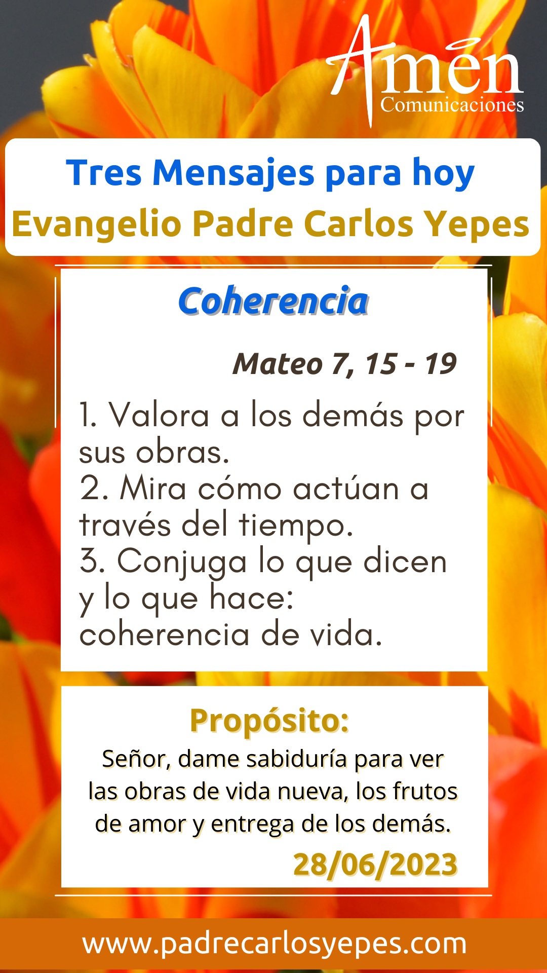 Hoy reconocemos, que el mundo ha constituido muchos falsos profetas, y no hablo solamente de brujos, de adivinos, de pronto de representantes religiosos que embaucan a otra persona prometiendo un cielo en esta tierra a base de dar su diezmo, no, hablo también de aquellos falsos profetas que la sociedad coloca como ídolos en el mundo de la canción, en el mundo deportivo, en el mundo de la política, en el mundo del espectáculo; de alguna manera los admiramos en demasía, los seguimos multitudinariamente en redes sociales, queremos conocer hasta el más mínimo detalle de sus vidas, coleccionamos todas las fotos a veces extravagantes, de sus estilos de vida, sus modas, sus formas de actuar. Hoy el Señor nos dice, que la verdad de un hombre no se descubre por las palabras aparentes, por las extravagancias de su vida, no, Jesús señala un criterio más fuerte para reconocer la verdad de un hombre, y es claramente los frutos de amor que da en su vida. Sirviéndose de la imagen del árbol, señalará como un árbol bueno sólo puede dar frutos buenos, y un árbol enfermo dará frutos dañados, frutos podridos.