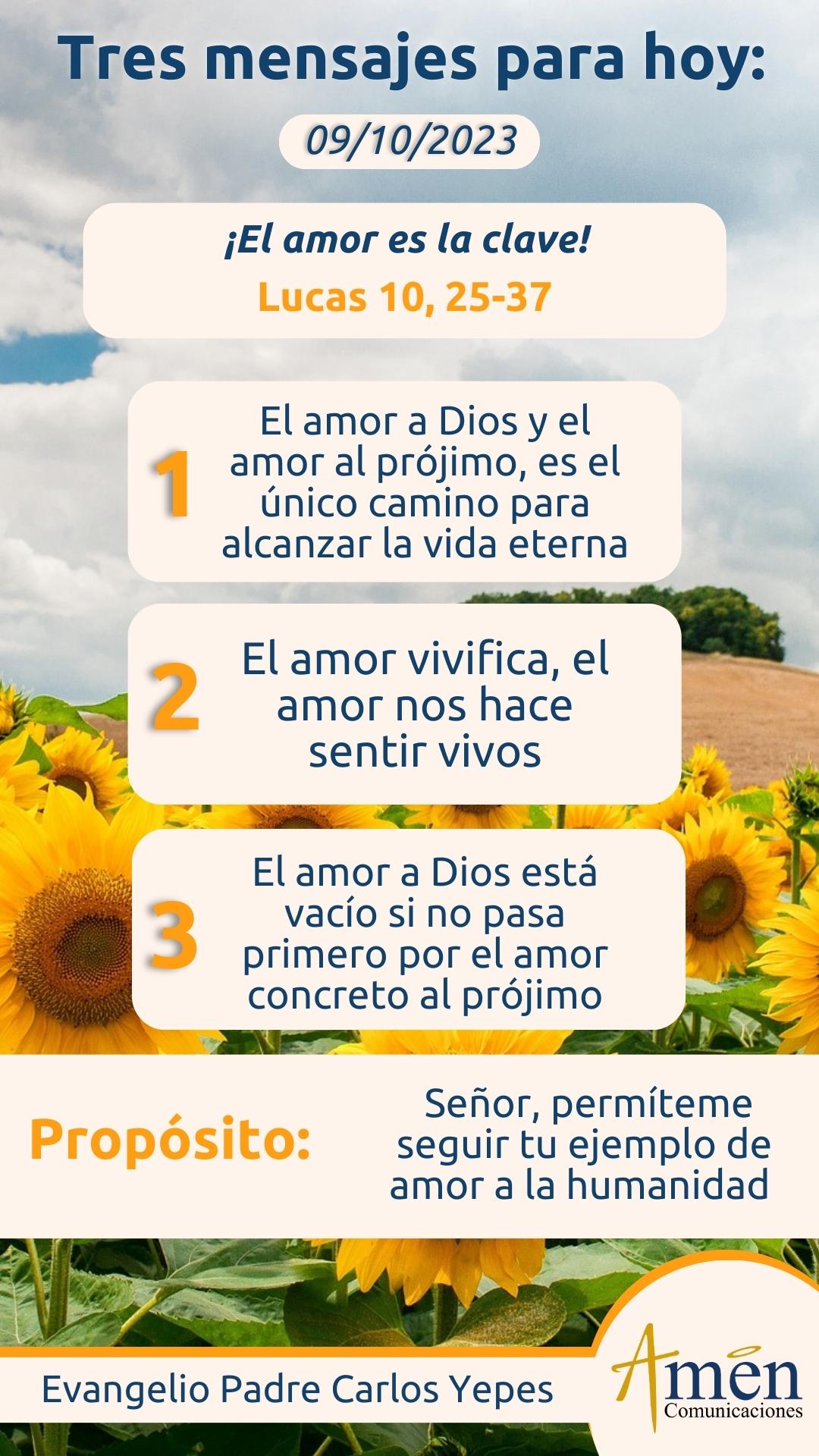 Tercera enseñanza, el amor a Dios está vacío sino pasa primero por el amor concreto al prójimo. No tiene sentido que el sacerdote en la parábola evangélica y el levita, el uno representante de los dirigentes religiosos, el levita asistente del templo, dieran un rodeo o le sacaran el cuerpo a quien estaba herido, bajo el pretexto de caer en impureza ritual o de ir a servir a Dios en el culto del templo. El apóstol san Juan, con gran sabiduría nos dice: “Miente quien dice que ama a Dios, a quien no ve, sino ama a su hermano a quien si ve”, es que el amor a Dios y el amor al prójimo no pueden separarse.