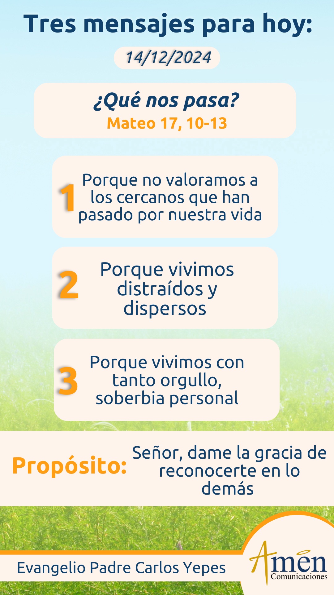 Señor, dame humildad para saber dónde hay verdad. Señor, ayúdame a reconocer los hombres de bien, los profetas, los que hablan en tu nombre y quieren el bien, quieren el progreso, el bienestar y la paz para mi vida.
