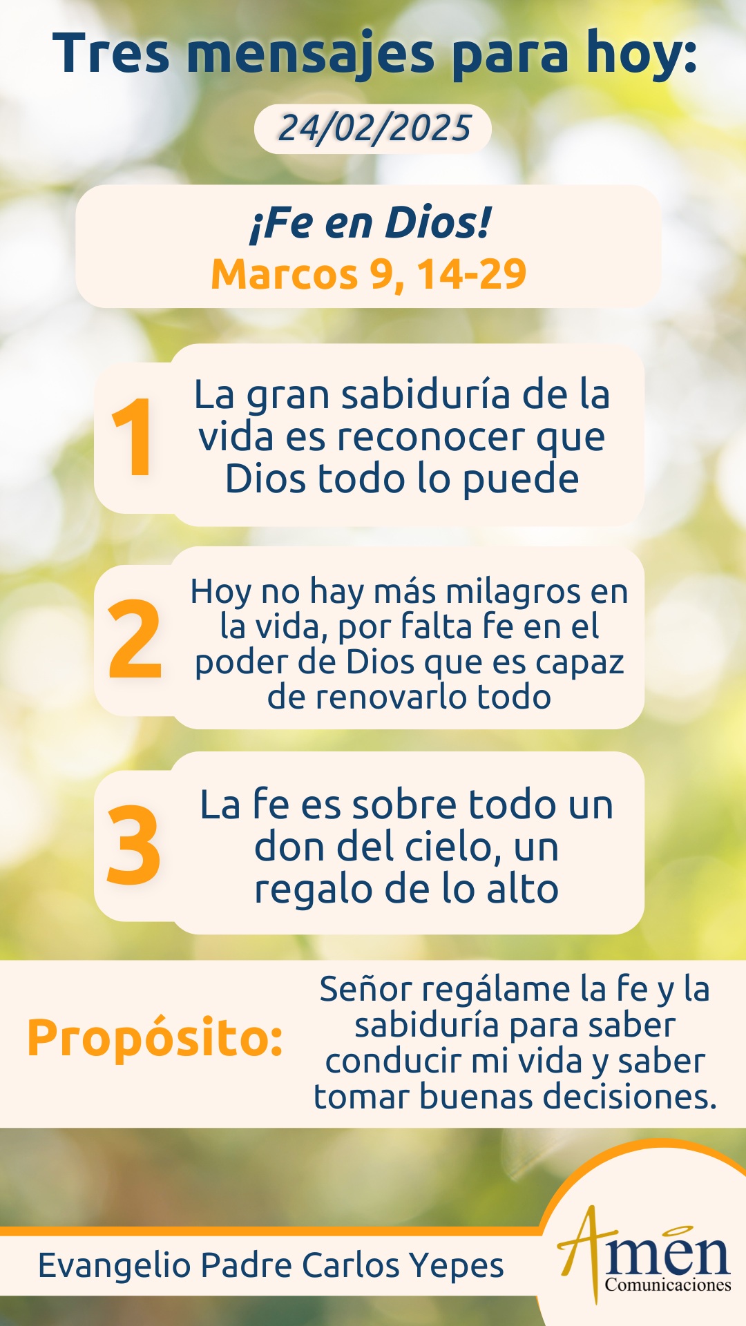 Hoy te invito a que pienses si no has sanado en tu enfermedad, si no te has recuperado de tu situación económica, si no se ha sanado esa relación matrimonial herida por continuas discusiones y palabras ofensivas. Si sientes que has fracasado educando y formando a tu hijo adolescente, pídele al Señor la fe, la sabiduría de Dios para saber conducir tu vida, para saber tomar buenas decisiones, para saber acompañar a los tuyos. El evangelio de Marcos continuará diciéndole al espontaneo ante la interpelación de Jesús: “Si cree”, le dice: “Si creo, pero tengo dudas en mi corazón, fortalece mi fe”. No te imaginas, aun siendo sacerdote, cuántas veces en mi vida le he dicho al Señor en momentos de intimidad y oración con Él, Señor, yo creo, pero fortalece mi fe. Señor, perdona mis dudas, Señor, ¿a quién acudiré?, solo en ti encontramos palabras de vida eterna. Esta tentación humana por demás, universal a la condición de todos los hombres, nos lleva a nosotros a experimentar miedos, interrogantes, dudas, búsquedas, incertidumbres. Pero eso es lo que hace precisamente que la fe sea una dimensión fascinante, retadora, desafiante en la vida de cada uno de nosotros, cuando buscamos permanentemente seguridades y certezas, y Dios nos invita a vivir más de la confianza y de la providencia de las promesas divinas contenidas por centenares a lo largo y ancho de toda la Sagrada Biblia. Nos dirá que Jesús, ante la gente que acudía a ver el caso del hombre con su hijo, increpa al espíritu malo y le dice: “Sal de este chico y no vuelvas a entrar a él”. Y dice el evangelista Marcos: “Que gritando y sacudiéndolo violentamente salió del niño, que en principio quedó como un cadáver, pero luego Jesús lo levanta tomándolo de la mano y poniéndolo en pie”. Al final, sus discípulos desconcertados ante su incapacidad para haber sanado la enfermedad del niño le preguntan a Jesús ¿por qué nosotros no pudimos liberar al niño del demonio de la enfermedad en su cuerpo? Y Jesús responde: “Esta especie de males sólo pueden salir con oración”, podríamos agregar, “sólo somos liberados por la oración de fe”.