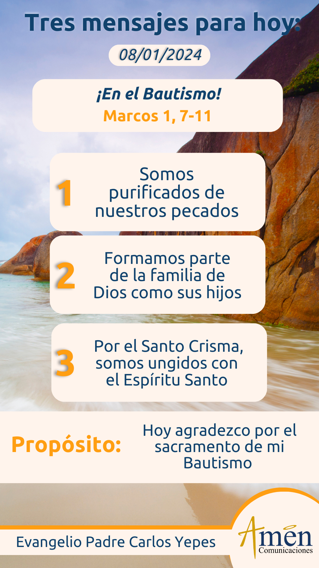 Hoy agradezcamos al buen Dios, el día de nuestro bautismo, agradezcamos al sacerdote que nos entregó en el agua y en el Espíritu Santo, esa vida nueva, y pidamos perdón, si no hemos tenido conciencia de sacramento tan alto. Mucha gente hoy se sorprende, que entre los siete sacramentos de la Iglesia, todos portadores y comunicadores de la vida divina, el más importante de todos, es precisamente el sacramento del Bautismo, cuya fiesta hoy celebramos en el bautismo de Jesucristo; y es el sacramento más importante, porque éste, nos da la condición y la dignidad más alta de todas, las dignidades, ser hijos plenos del Rey.