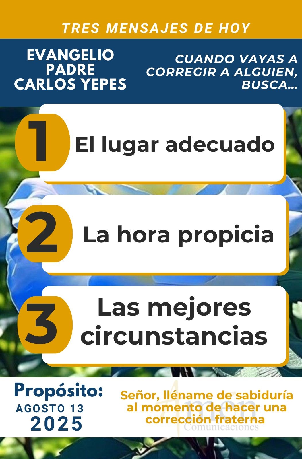 Hoy te invito a que reconozcas el valor de la corrección, el acompañamiento, la exhortación en la vida de tus hijos, tus hermanos, tus amigos, tu comunidad, tus empleados. Unos frente a otros somos corresponsables y a veces, cuando alguien toma un camino equivocado que le lleva a su autodestrucción, incluso a su muerte, tal vez tenemos que preguntarnos ¿si nosotros por omisión callamos, no exhortamos, no hablamos a otra persona?