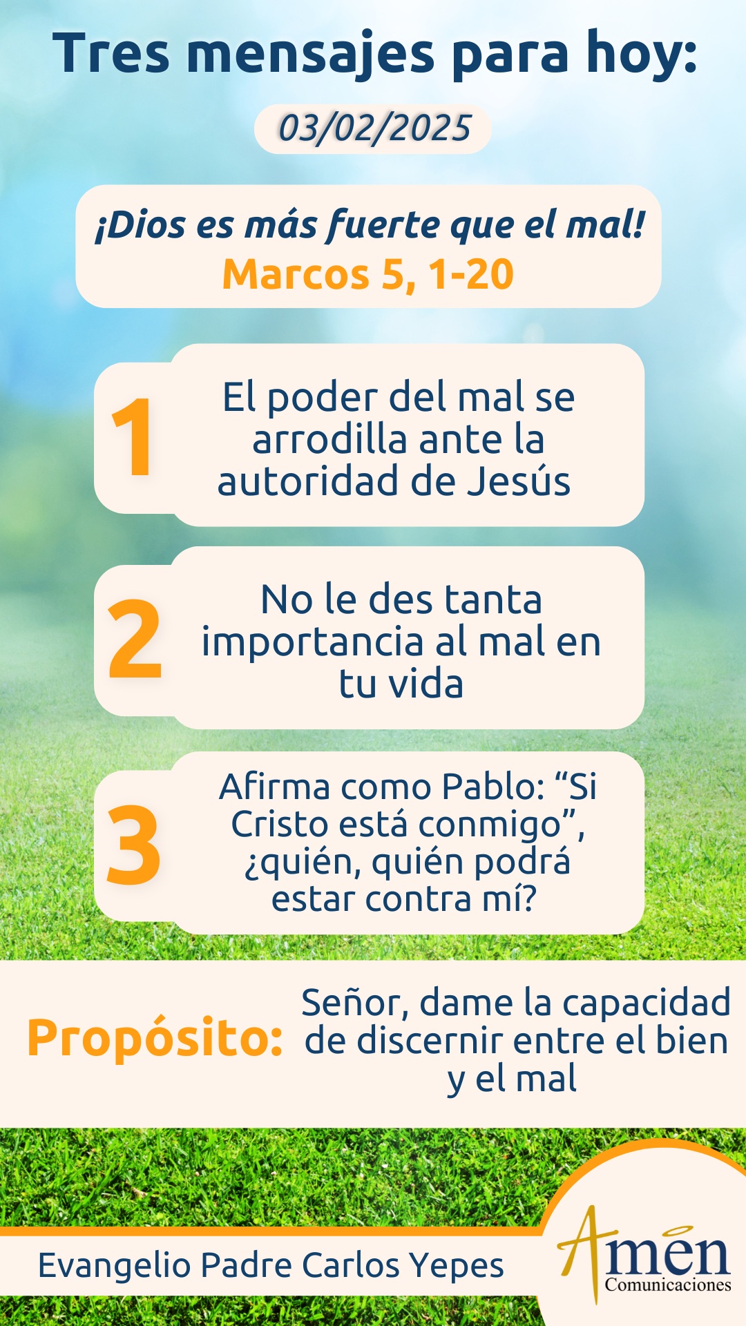 Hoy no le des tanta importancia al mal, hoy no le des tanto reconocimiento al ruido que los malvados, los violentos de este mundo hacen, en el mundo de la política, en el mundo de las empresas, en el mundo familiar. Confía en el Señor, medita esta hermosa página de la primera lectura de hebreos 11 y por tu fe en el Señor aprende a decir como el apóstol Pablo: “Si Cristo está conmigo”, ¿quién, quién podrá estar contra mí?