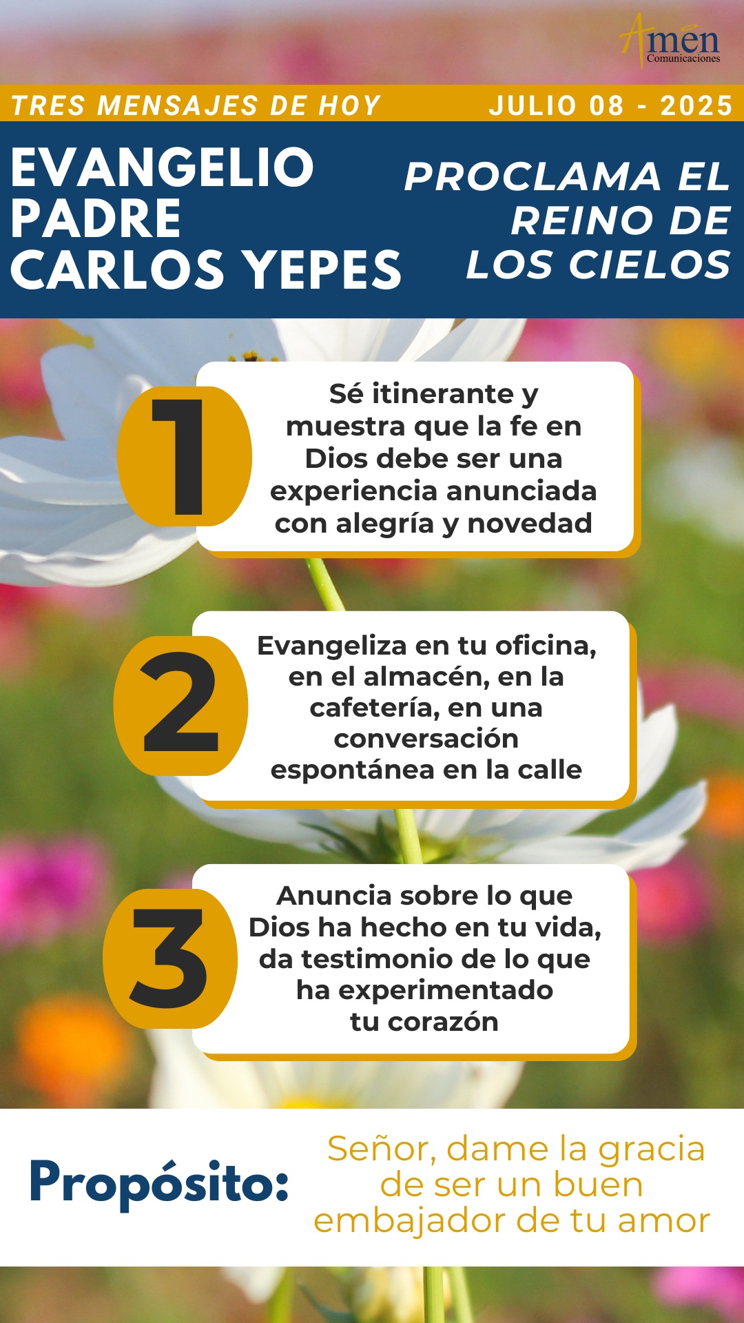 TRANSLITERACIÓN REFLEXIÓN PADRE CARLOS YEPES ¡No te canses! Frente a la curación que hace Jesús de un hombre que no podía hablar y que entendían algunos que estaba como poseído por el mal, despierta una doble reacción; la gente sencilla se admiraba y simplemente de manera espontánea exclamaban: “Nunca en nuestro pueblo, en Israel, hemos visto cosa igual”. Por el contrario, había una reacción distinta en los fariseos, que fungían como líderes y modelos religiosos para la sociedad, y lejos, y a diferencia del pueblo sencillo que se alegraba por la curación que obraba Jesús en un hombre mudo, simplemente con suspicacia y con malicia decían: “Este Jesús cura y echa los demonios con el poder del jefe de los demonios”. Desde que el hombre es hombre y desde que el mundo es mundo, descubramos que siempre existirán personas que aceptarán de buen grado la fe, y habrá también personas, que, aunque vean milagros todos los días en la Iglesia, en los sacerdotes, en los bautizados, no creerán en el evangelio, no creerán en la Iglesia, porque su ceguera interior se los impide. Hoy te invito en un cambio de época, donde hemos pasado de una cultura cristiana a una cultura que llamamos secular, donde importa la materia, el placer y el bienestar humano, pero hemos sacado a Dios de nuestra vida, te invito para que no te canses de evangelizar y, por el contrario, siguiendo el ejemplo del evangelio de hoy, descubramos actitudes fundamentales de Jesús hace 2000 años y de todo evangelizador en los tiempos de hoy. Primera actitud, nos dice el evangelista Mateo que Jesús, recorría las ciudades y aldeas. Hoy se nos invita a que no nos encerremos en nuestra casa, en nuestros templos parroquiales y que por el contrario seamos itinerantes, caminantes y mostremos, que la fe en Dios, la experiencia de Dios, debe ser una experiencia pública llamada a ser anunciada con alegría, como novedad y como maravilla de lo que Dios trascendente es capaz de hacer en el hombre. Pero en una segunda actitud descubrimos, según señala el evangelista san Mateo, que Jesús no para de enseñar en las sinagogas. Y hoy te invito para que descubras que las nuevas sinagogas no son solamente el templo parroquial; sino tu oficina, el almacén, la cafetería, la conversación espontánea en la calle. No dejes de enseñar a tiempo y a destiempo, oportuna e inoportunamente. Si en el mundo a veces somos tan atrevidos para hablar de todo tipo de temas ¿por qué los creyentes, por qué los cristianos vamos a silenciarnos? Hay que enseñar la fe con paciencia, con pedagogía, con amor. En una tercera actitud nos dice Mateo: “Que Jesús anuncia el evangelio del Reino, un reino de Dios que es paz, que es justicia, que es amor, que es vida, que es gracia, que es verdad”. Hoy anúnciale a tu familia, a los tuyos, lo que Dios ha hecho en tu vida, da testimonio de lo que has visto, de lo que has escuchado, de lo que ha experimentado tu corazón, y no te calles, no te silencies. En un mundo de confusiones donde la maldad se pretende presentar como bondad, donde la mentira se pretende presentar como verdad, hoy descubre que más que nunca se necesita de evangelizadores, anunciando una manera distinta de vivir. Es que si en el corazón todos los hombres y mujeres tuviéramos los valores del Reino: Justicia, paz, perdón, amor, servicio, con seguridad nuestra sociedad y nuestra vida sería mejor. Pero continúa el evangelio de san Mateo y más allá de ser itinerante, de enseñar y de anunciar el Reino, Jesús cura enfermedades y dolencias. Y hoy reconoce que, por el bautismo, todos tenemos la fuerza del Espíritu Santo y estamos llamados a creer, a creer de verdad, que tenemos poder de sanación por nuestra oración frente a los enfermos y frente a los que sufren. Pensamos, de una manera muy simplista, ¿y yo qué puedo hacer?, yo no puedo arreglar este mundo; y quizás hay algo de verdad en esto, pero si puedes arreglar tu mundo, el de tu familia, el de tu trabajo, el de tus más cercanos. Ora por los tuyos, no temas hablarles de Jesús, no temas tener palabras curativas, terapéuticas, de estímulo, de animación frente aquel que se siente abatido. Nos dice el evangelista en una quinta actitud, “que Jesús siente compasión de la gente y ve la multitud extenuada y abandonada, como un rebaño de ovejas que no tienen pastor”. Hoy descubre, que no se puede ser verdadero evangelizador y cristiano, sin una auténtica compasión; y reconocemos que el mundo capitalista, el mundo postmoderno nos ha vuelto profundamente indiferentes, indolentes frente a los demás. Terminemos nuestra reflexión, mostrando como Jesús ora al Padre de los cielos e invita a todos los evangelizadores para que oremos, pidiendo misioneros, trabajadores en la mies, esto es, en el campo del mundo. Itinerancia, enseñanza con paciencia y amor, anuncio de los valores del Reino, curación de dolores y enfermedades, compasión en el corazón, y oración. Seis actitudes propias del evangelizador que necesita nuestro mundo. Te lo repito, no te canses de evangelizar, no te canses de ser misionero, no te canses de ser instrumento del amor de Dios. Que el Señor, te bendiga en abundancia en este día. En el nombre del Padre, y del Hijo y del Espíritu Santo. Amén.